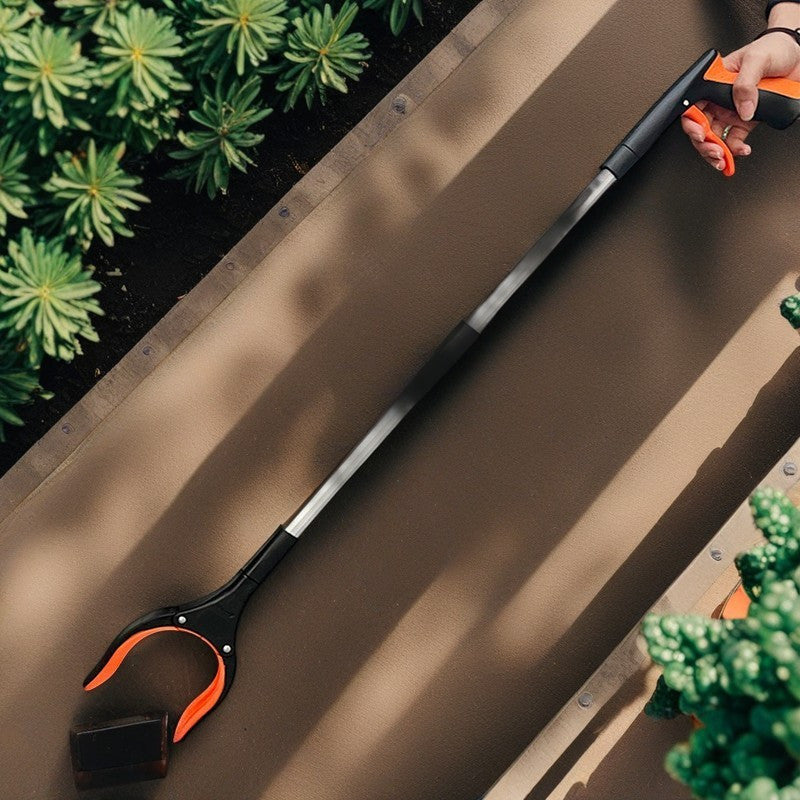 Mustahkam alyuminiy qotishmasidan tayyorlangan ergonomik uzun tutqichli axlat qamchisi - oshxona, yotoqxona, yashash xonasi va ochiq joylarda samarali chiqindilarni yig'ish uchun qulay tutish va qari insonlar uchun mo'ljallangan.