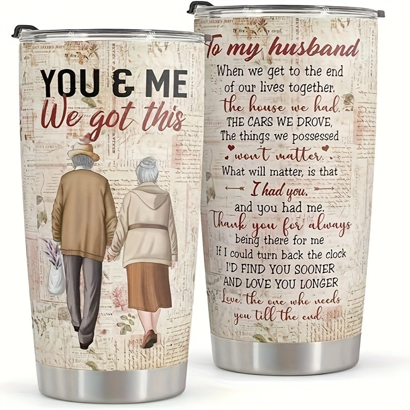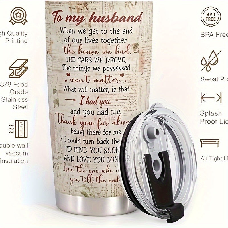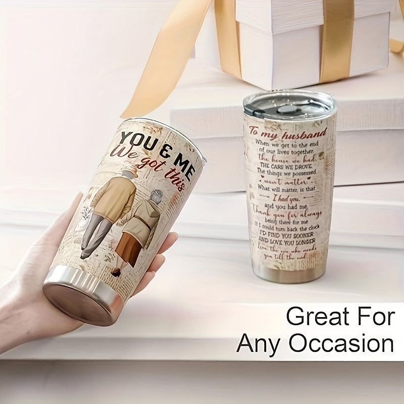 Erkaklar uchun 20oz zanglamaydigan po'latdan yasalgan tumbler, yurakdan kelgan xabar bilan, Valentin kuni va tug'ilgan kun sovg'asi