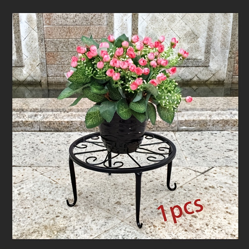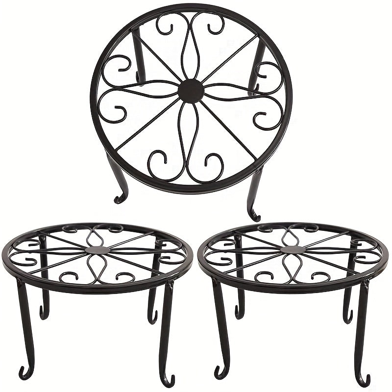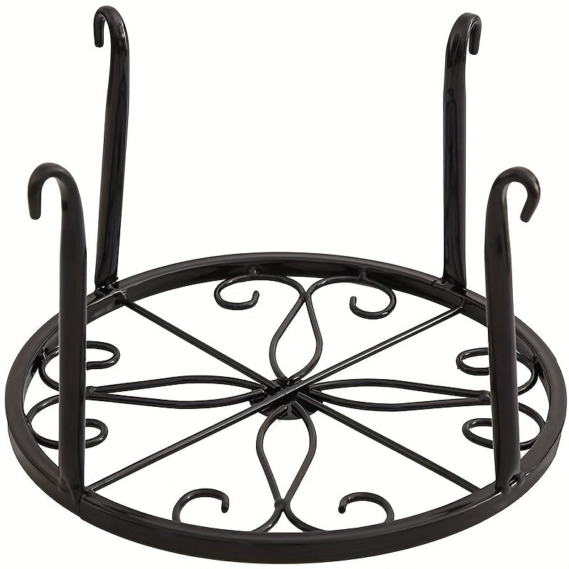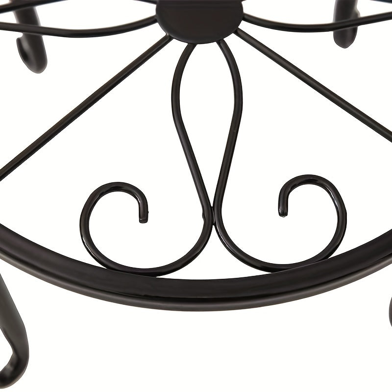 Qora metall o'simlik stendi dumaloq gul naqshli, chirishga qarshi, ichki va tashqi bog' uchun ko'rgazma