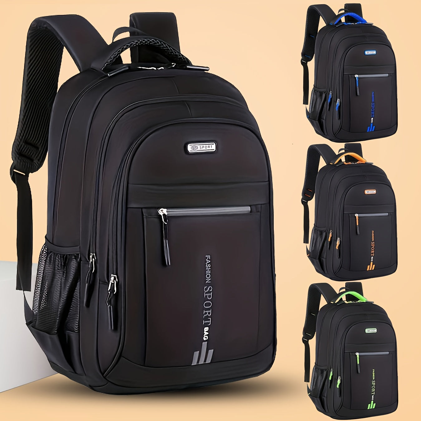 Talabalar uchun sozlanadigan kamarlar bilan qora suv o'tkazmaydigan naylon noutbuk sumkasi