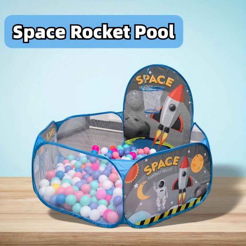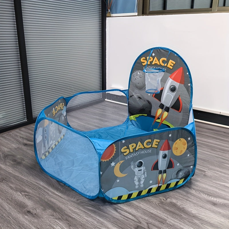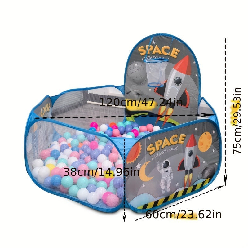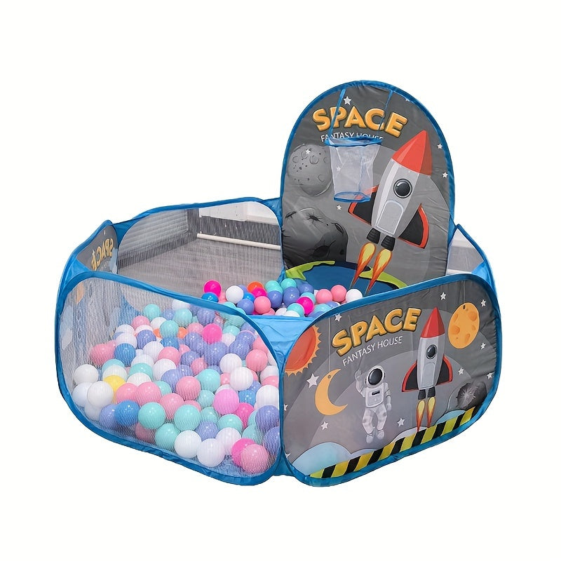 Bolalar uchun ko‘k polyester kosmik mavzuli to‘p o‘yin maydonchasi chodiri, ichki o‘yin uchun, yig‘iladigan va portativ