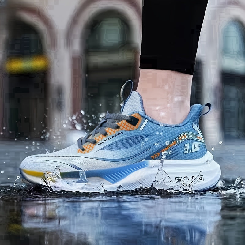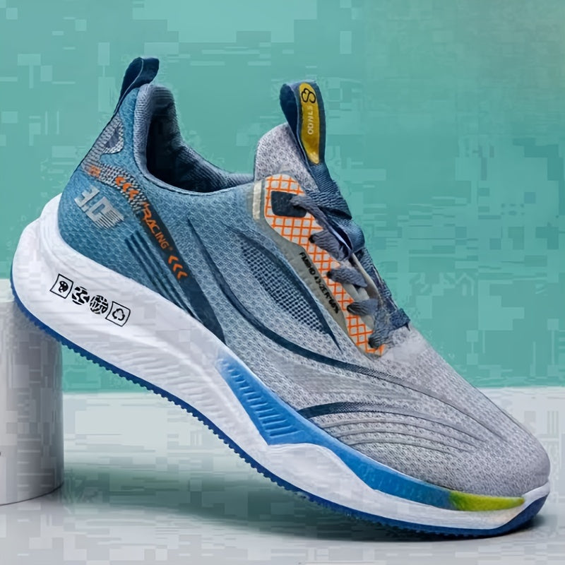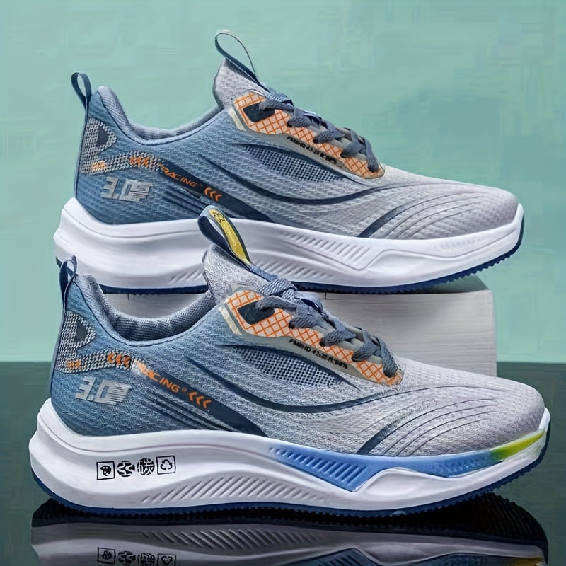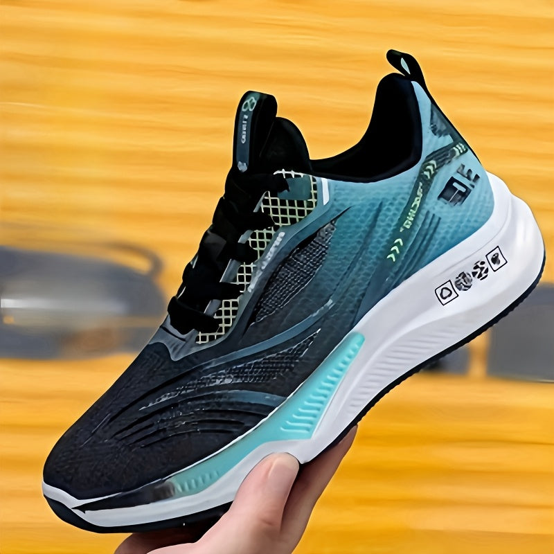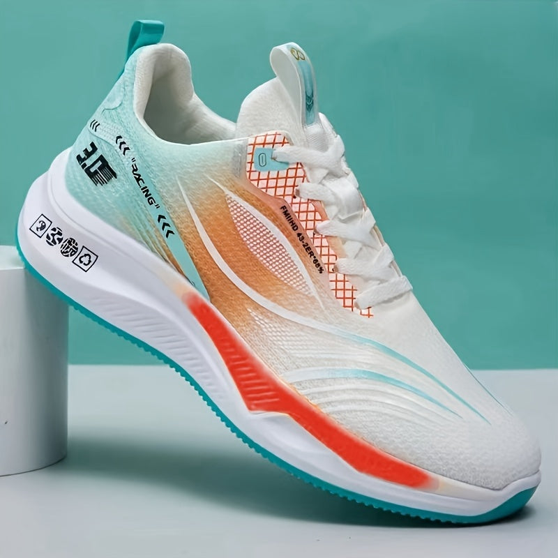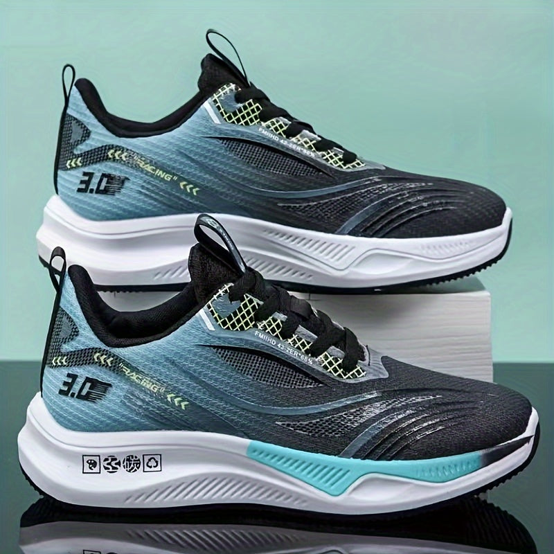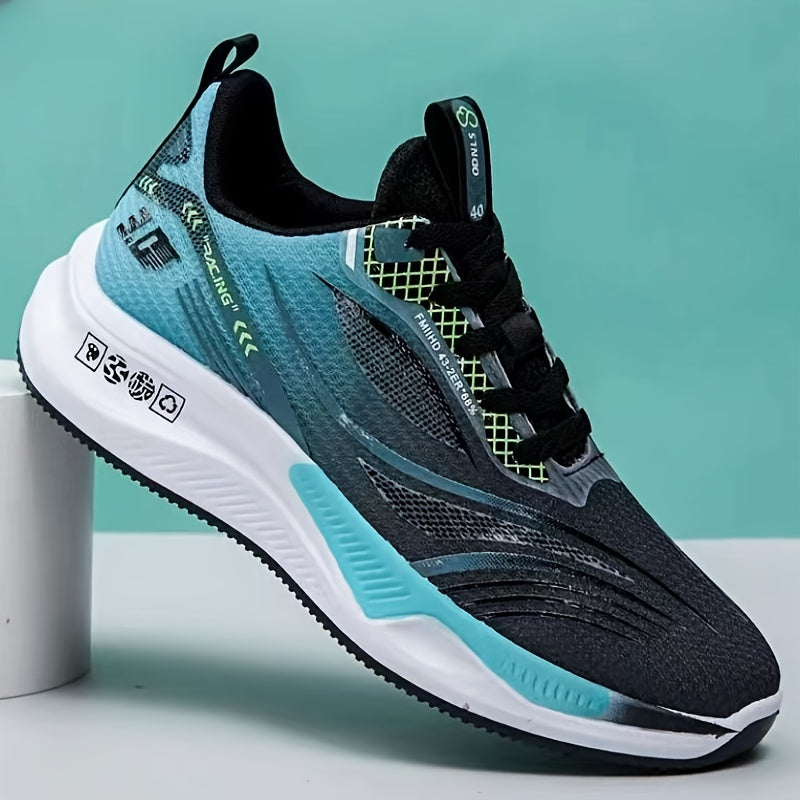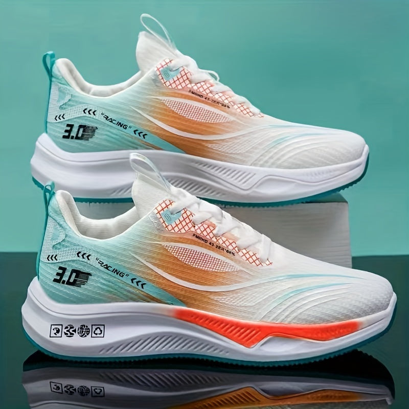Erkaklar uchun nafas oladigan yugurish poyabzali, gradient rang chiziqli naqsh va pastki yuqori dizayni bilan