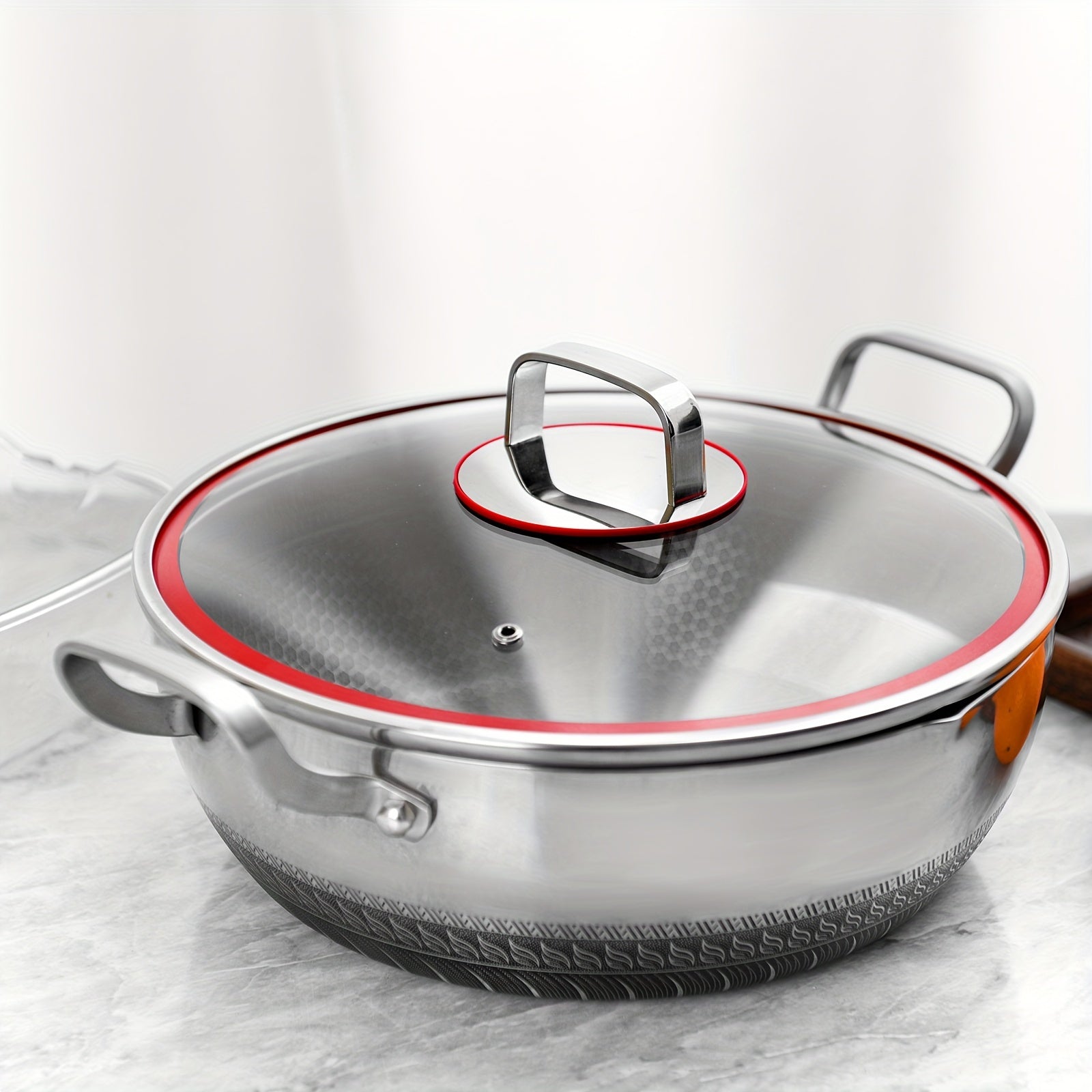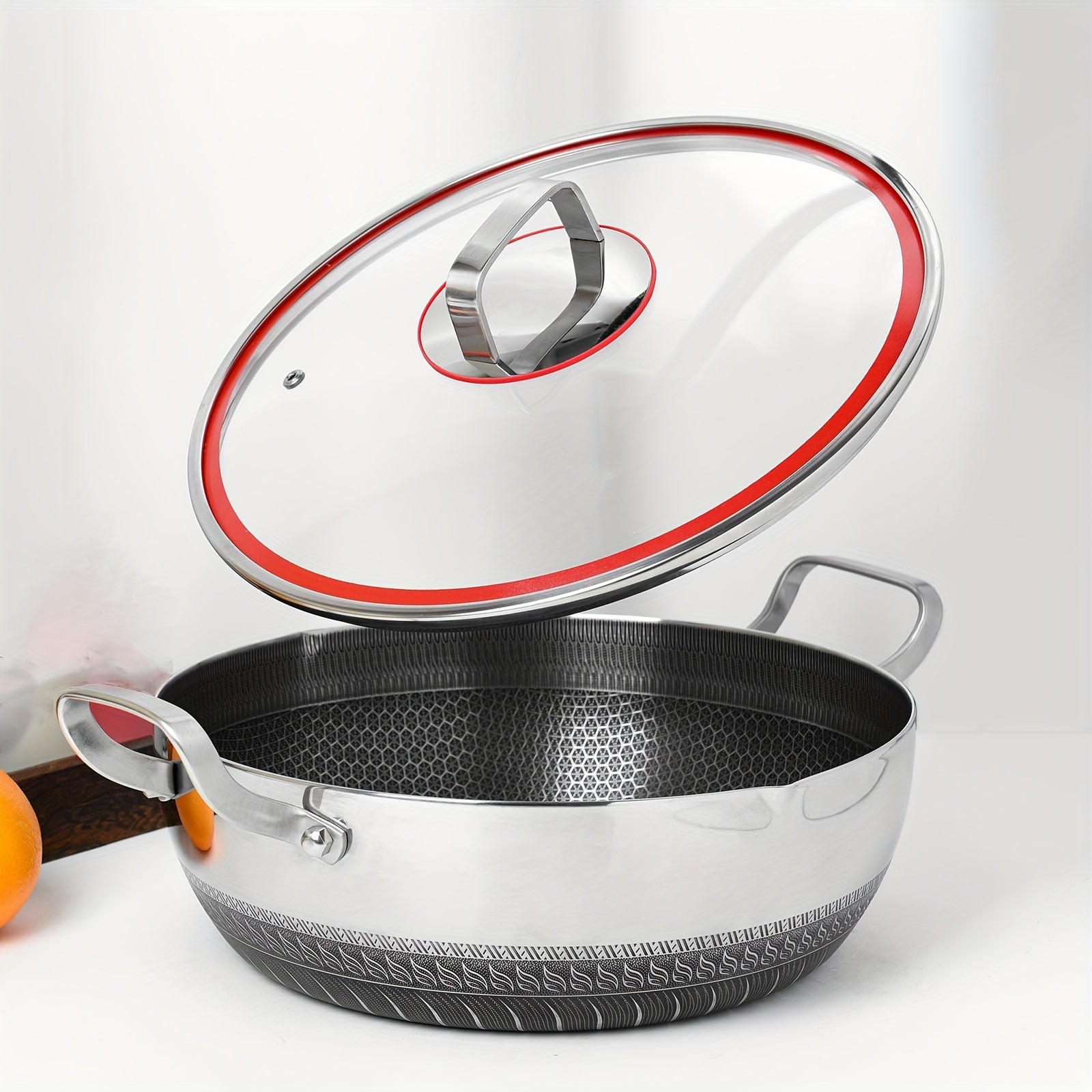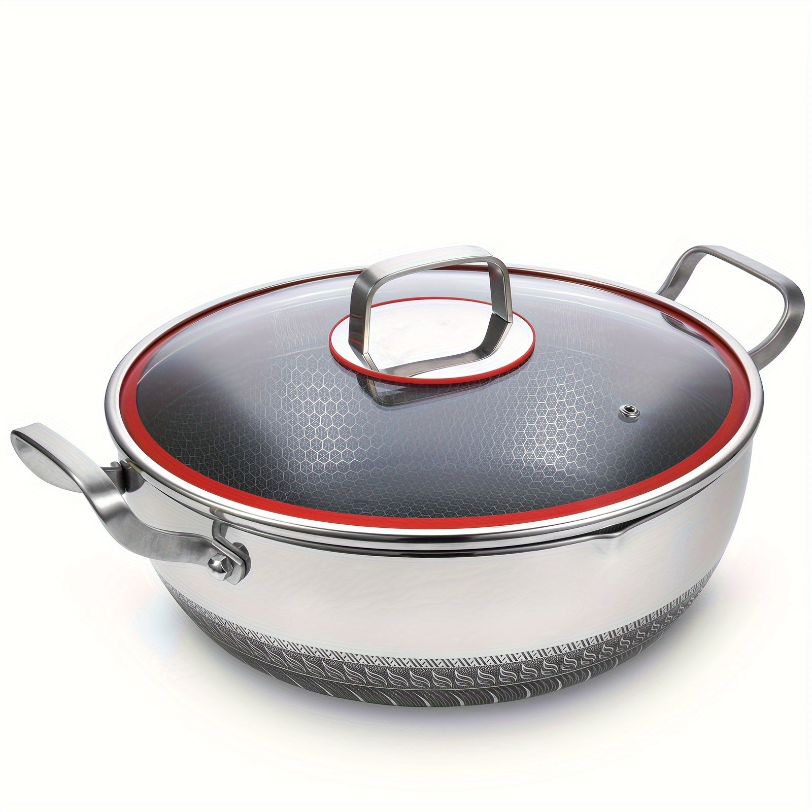 Uy oshxonasida foydalanish uchun mustahkam idish-to'plam: Tri-Ply zanglamaydigan po'latdan yasalgan qovurish panasi va qopqoq bilan yopishqoq sho'rva qozoni, issiq idish tayyorlash uchun ideal