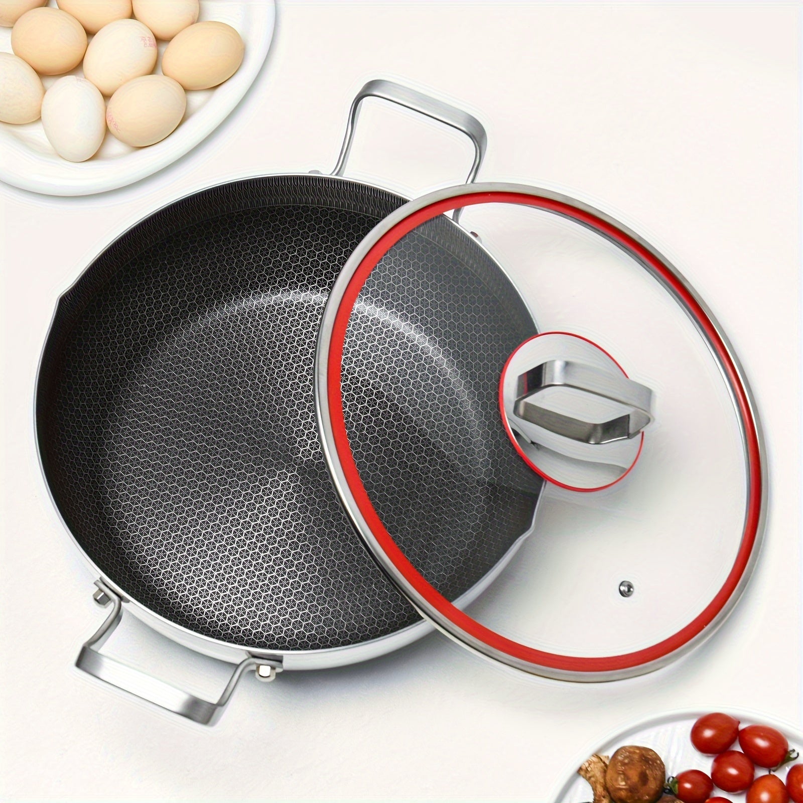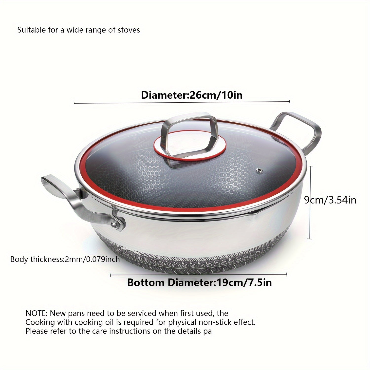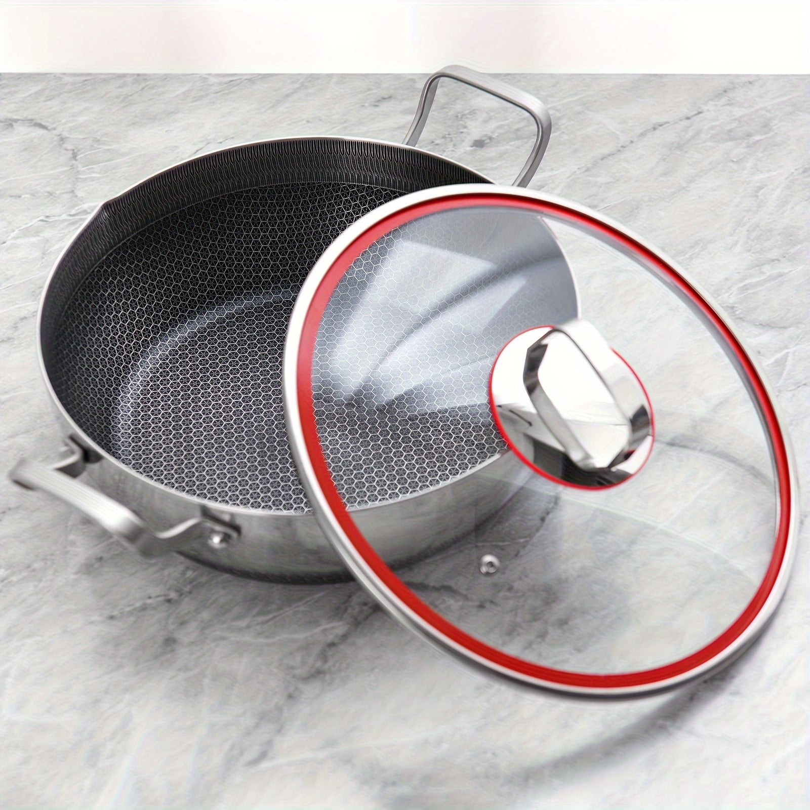 Uy oshxonasida foydalanish uchun mustahkam idish-to'plam: Tri-Ply zanglamaydigan po'latdan yasalgan qovurish panasi va qopqoq bilan yopishqoq sho'rva qozoni, issiq idish tayyorlash uchun ideal