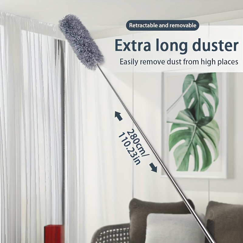 Mustahkam chang tozalash asbobi, cho'ziladigan tutqich va moslashuvchan bosh bilan - Yuqori shiftlar, mebellar va avtomobillar kabi qiyin erlarni tozalash uchun ideal - Yuvilishi va qayta ishlatilishi mumkin