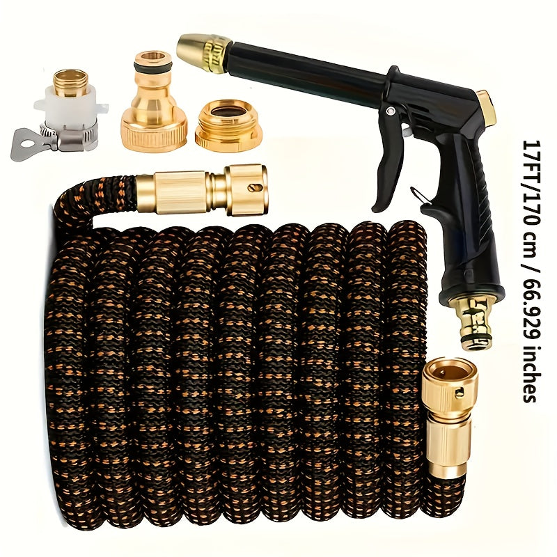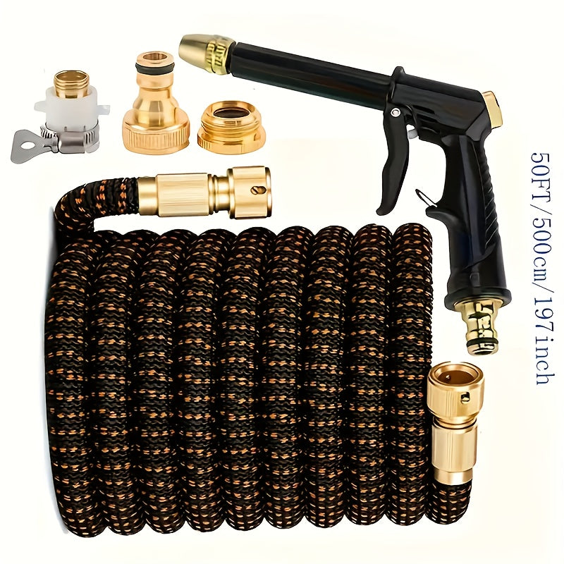 Yuqori bosimli purkagich bilan mustahkam kengaytiriladigan bog‘ hose, o‘rmon parvarishi va avtomobil yuvish uchun ideal, sozlanadigan nozzle va qo‘shimcha ulanishlar bilan birga.