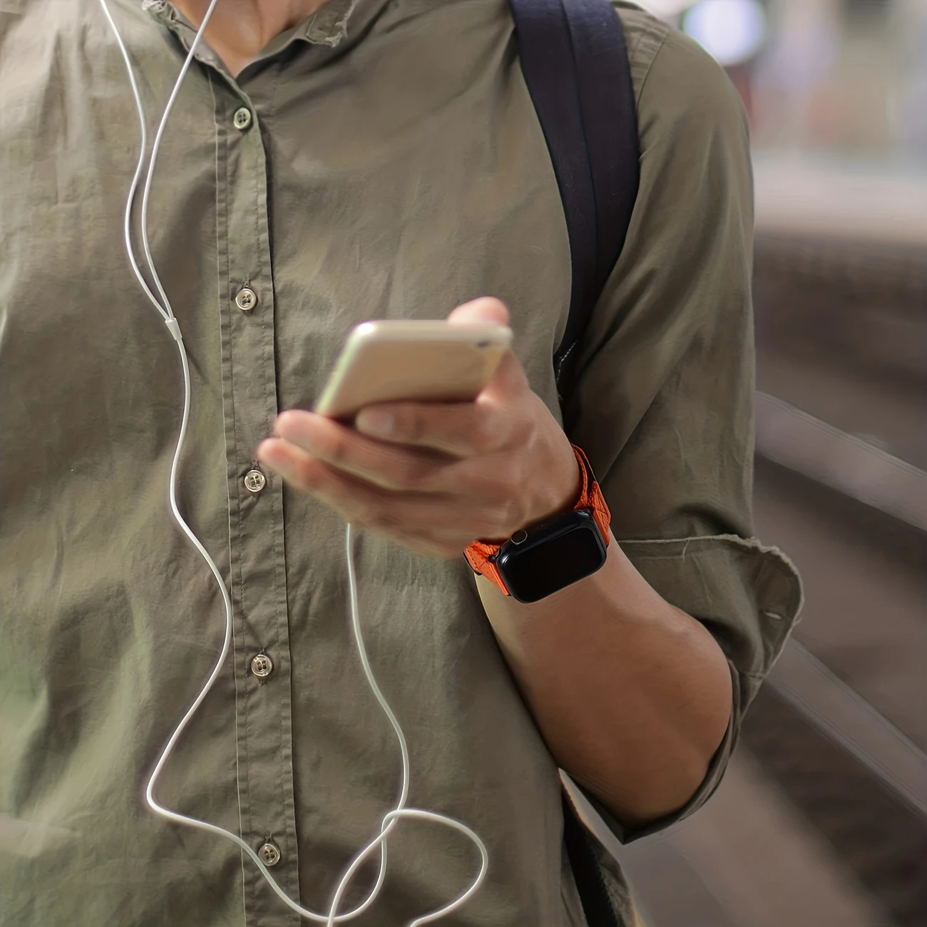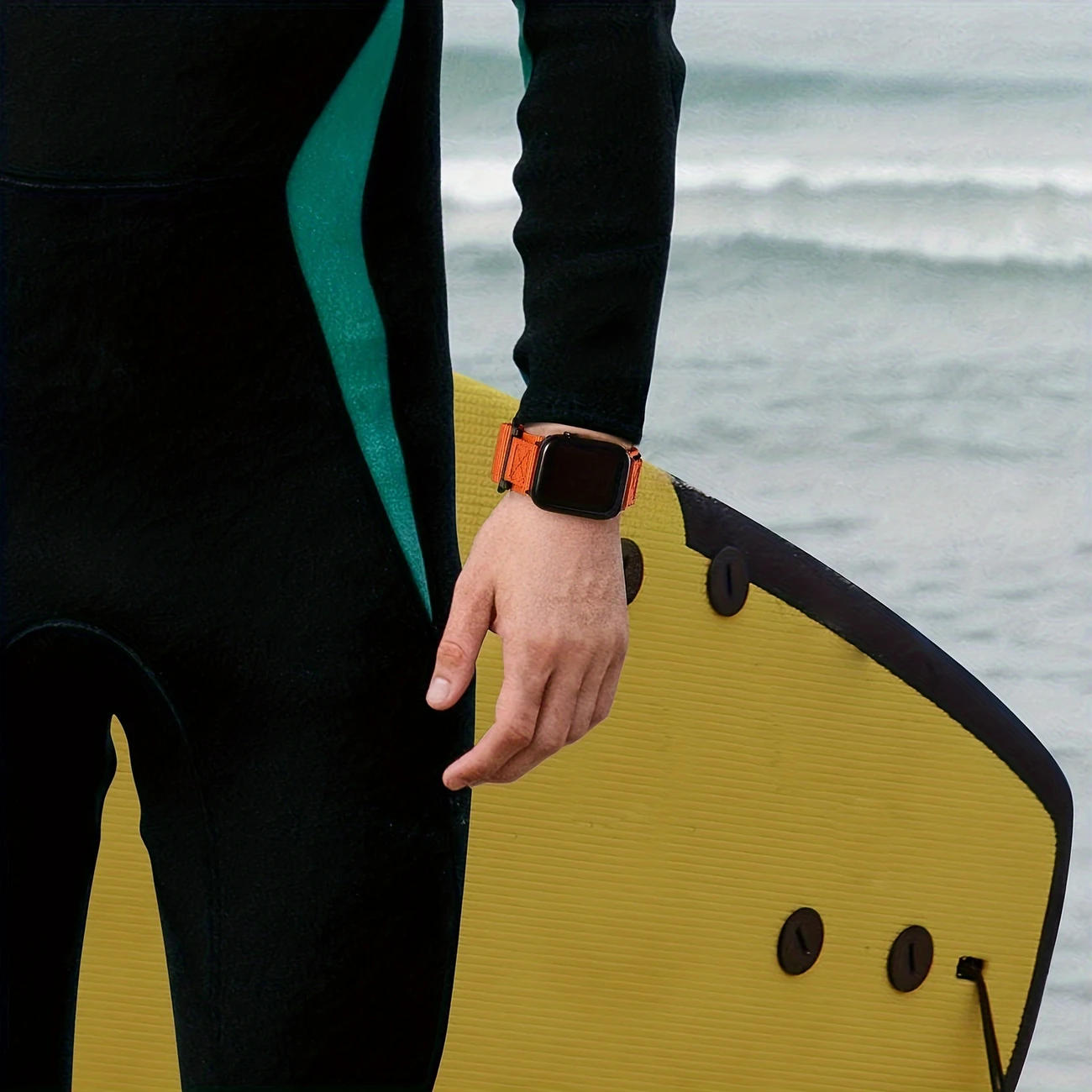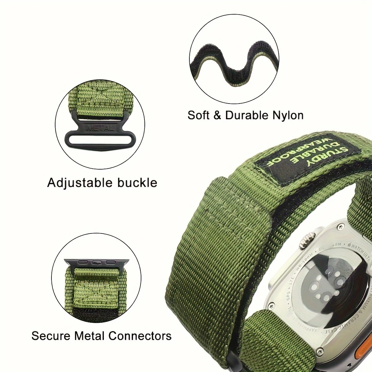 Turli o'lchamlardagi iPhone Watch uchun mustahkam naylon tasma. Erkaklar uchun harbiy taktik dizayn, bir nechta iPhone Watch seriyalari bilan mos keladi.