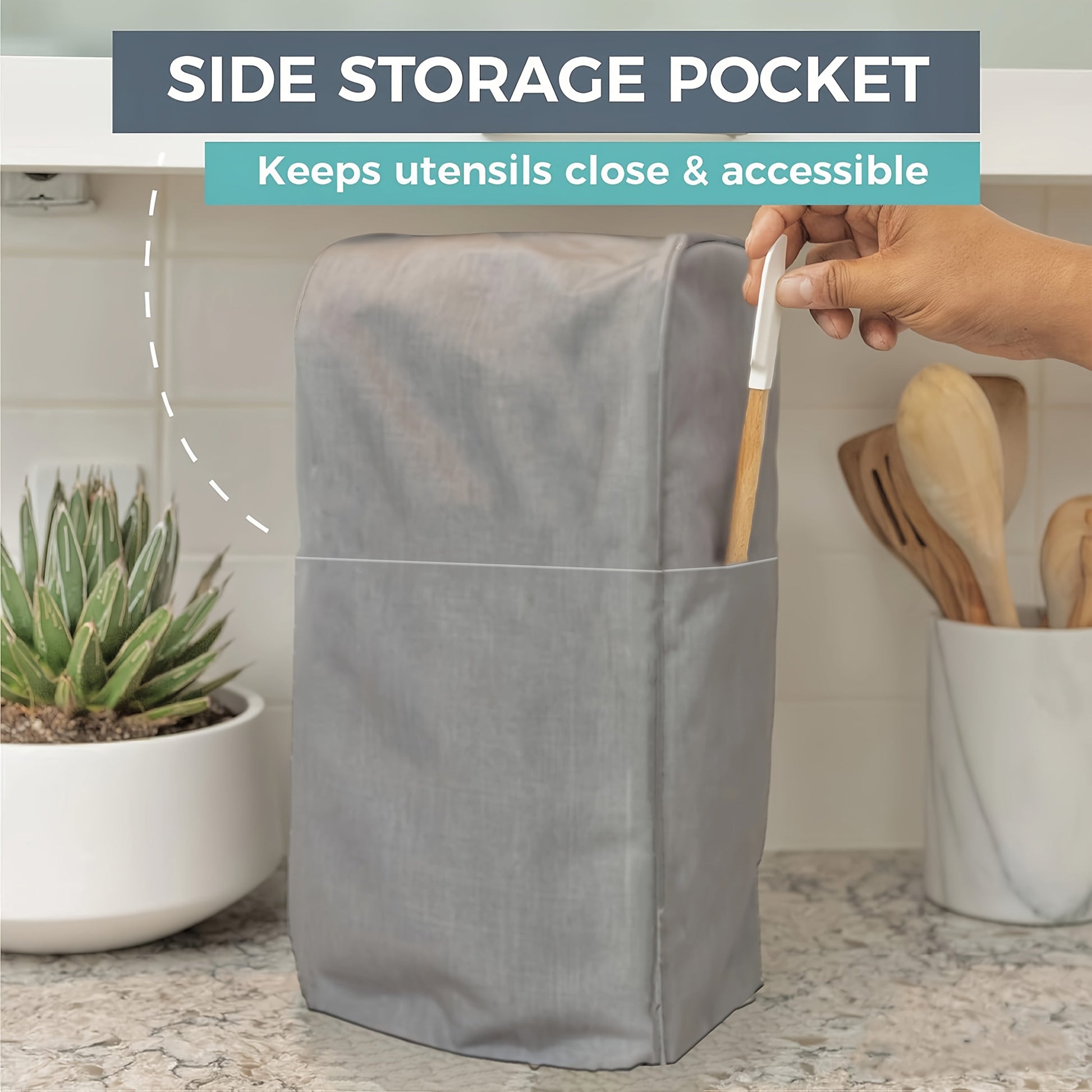 Kuchli kulrang sharbat chiqaruvchi va oziq-ovqat protsessori uchun mustahkam Oksford mato qopqog'i - 11-14 stakan modellari uchun mos, changdan va suvdan himoyalovchi, qulay kirish cho'ntaklari bilan, oshxona blenderini himoya qiladi.