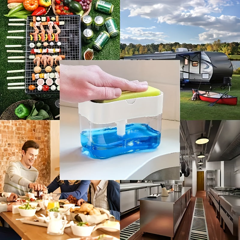 Qulay to'ldirish dizayni, oshxona va lavabo uchun joyni tejaydigan, bepul gubka bilan birga keladigan, gubka ushlagichi bilan mustahkam plastik sabun tarqatuvchi to'plami - uy tozalash uchun mukammal.