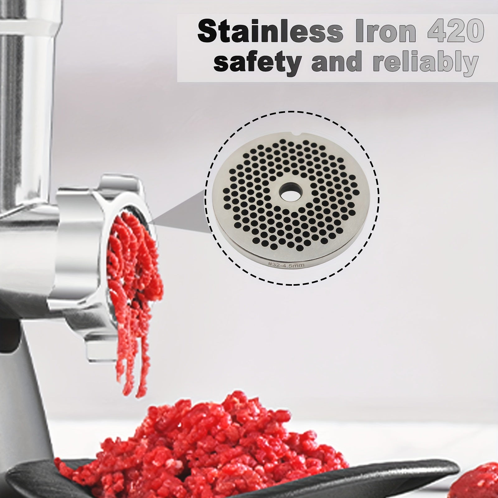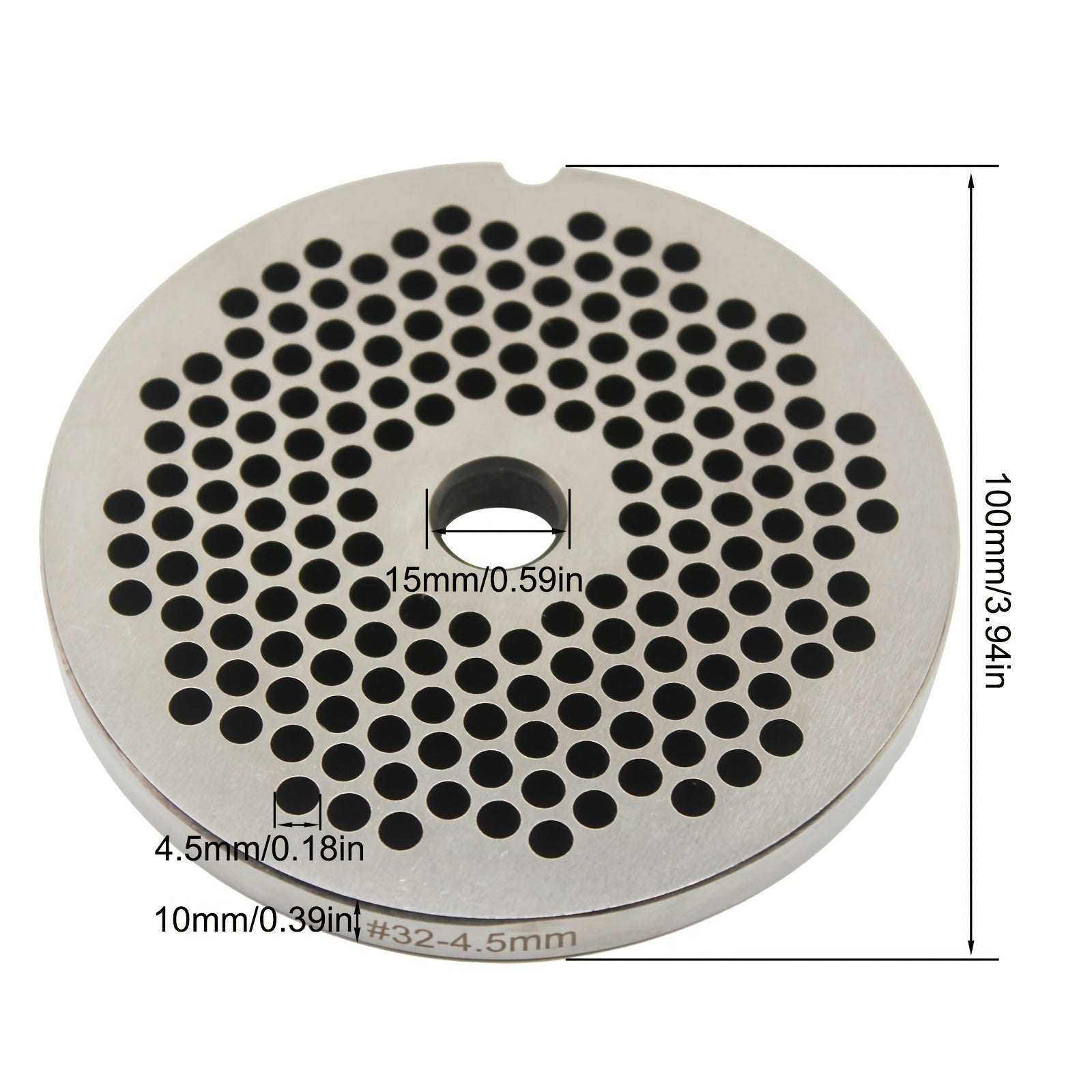 Mustahkam zanglamas po'latdan yasalgan go'sht maydalagich diski, 1 dona, 32-4.5mm teshikli plita - oziq-ovqat uchun xavfsiz, uyda yoki tijorat sharoitida oshxonalar uchun oddiy foydalanish uchun maydalagich qo'shimchasi