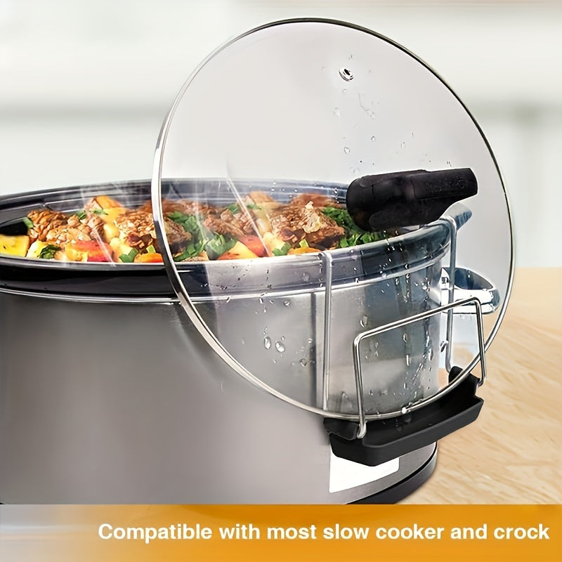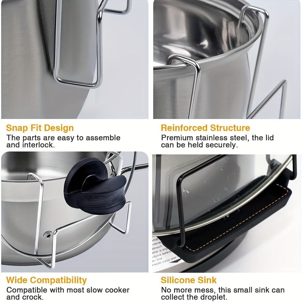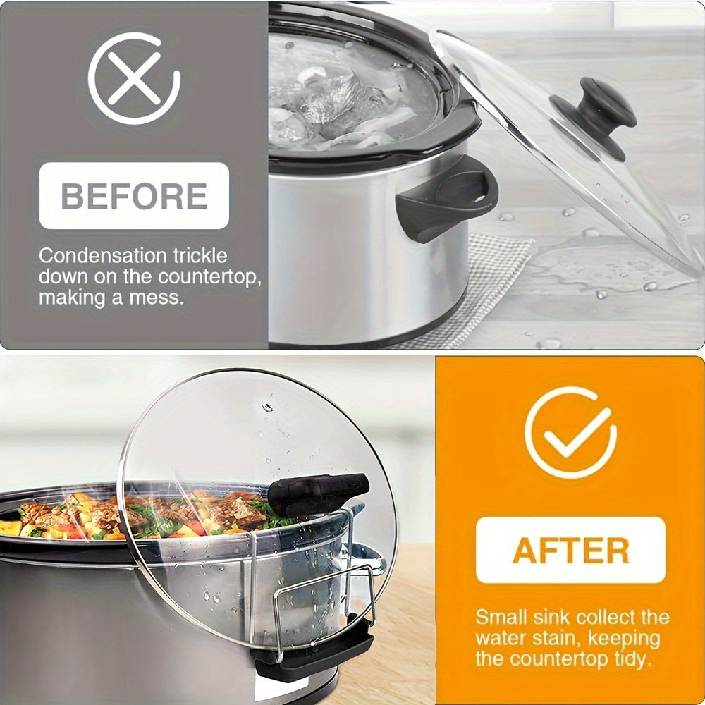 Mustahkam zanglamaydigan po'latdan yasalgan qozon qopqog'i ushlagichi, silikon tomchi idishi bilan - ko'pchilik sekin pishirgichlar va qozonlar bilan mos keladi, toza ish stolini saqlashga yordam beradi, idish-tovoq tozalash mashinasida oson tozalanadi.