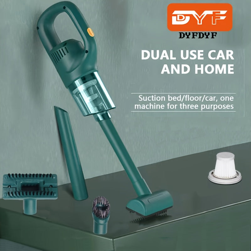 DYFDYF qo'l bilan ishlatiladigan simsiz vakuum tozalagich avtomobil va uy uchun ikki xil foydalanish imkoniyatiga ega, USB orqali zaryadlanadigan 18650 litiy batareyasi, kuchli 2.9 KPa so'rish kuchi, past 70dB shovqin darajasi va 0.1-0.2L hajmga ega.