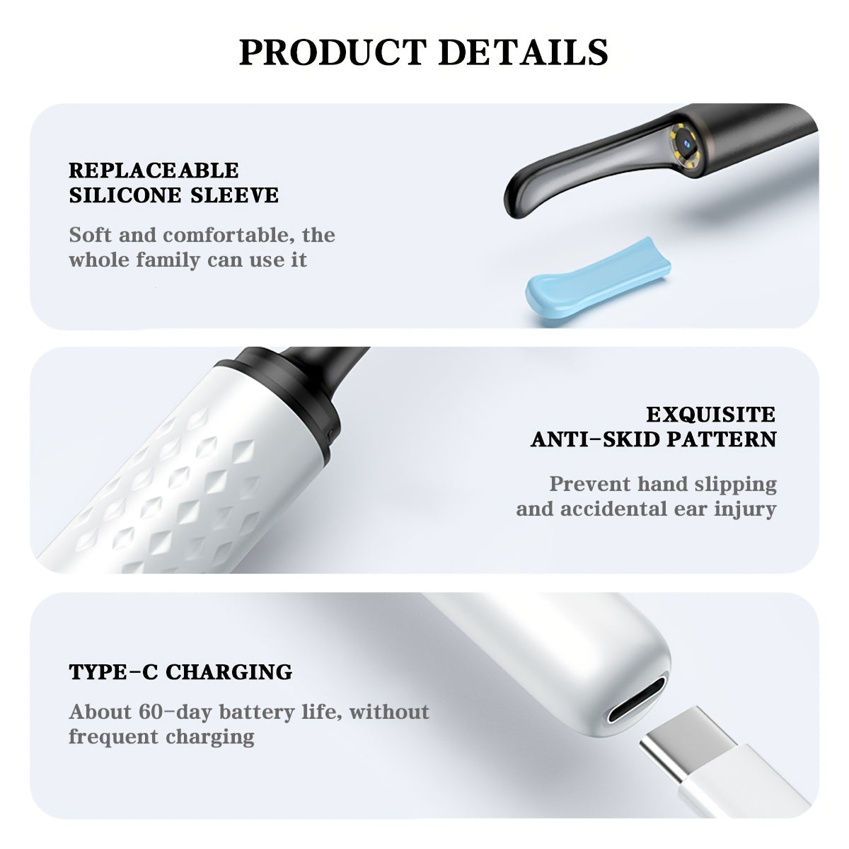 Katta yoshdagilar uchun kamera, yorug'lik va 4 ta uchi bo'lgan quloq mumini olib tashlash vositasi.