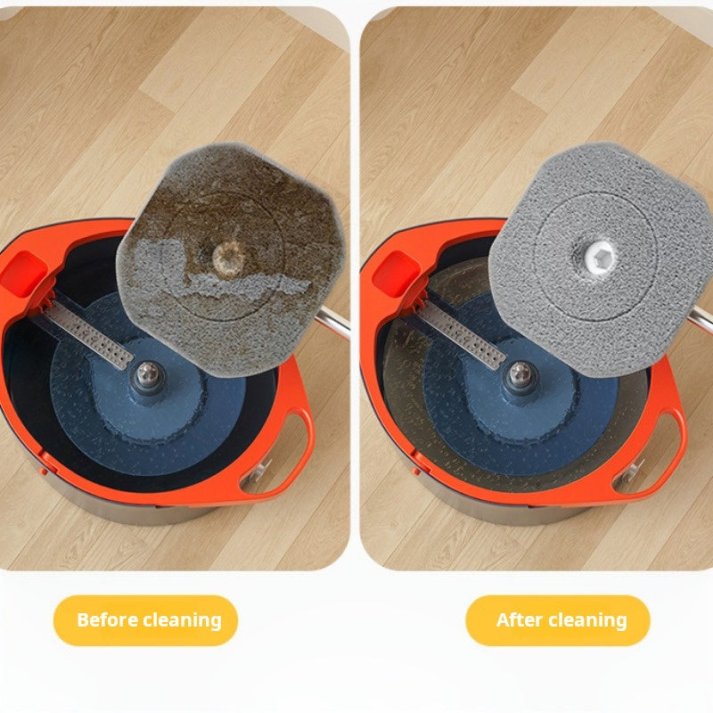 O'z-o'zini tozalash mop va kova to'plami, ikki tomonlama quritish bilan, mikroflanel yostiqlari bilan ta'minlangan