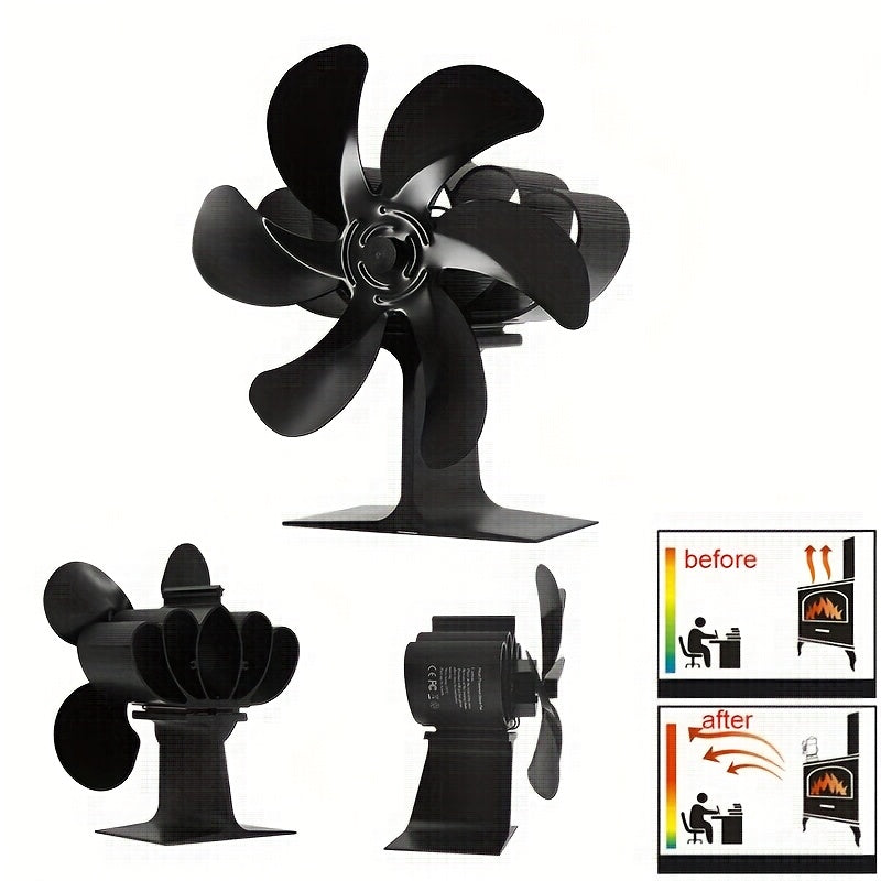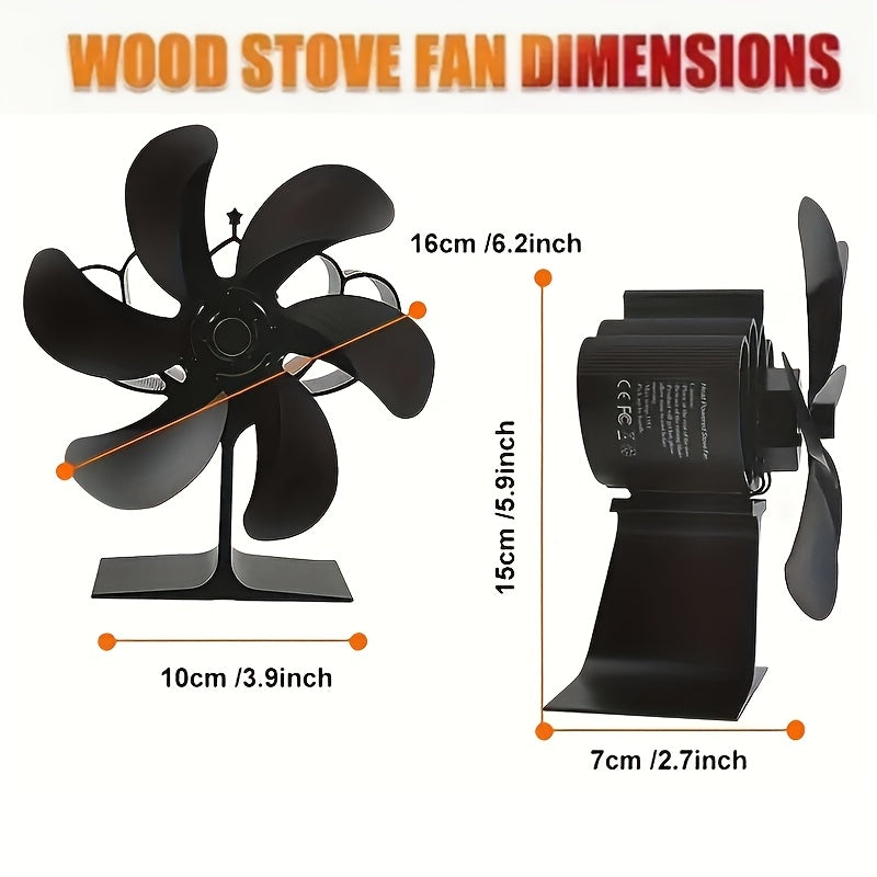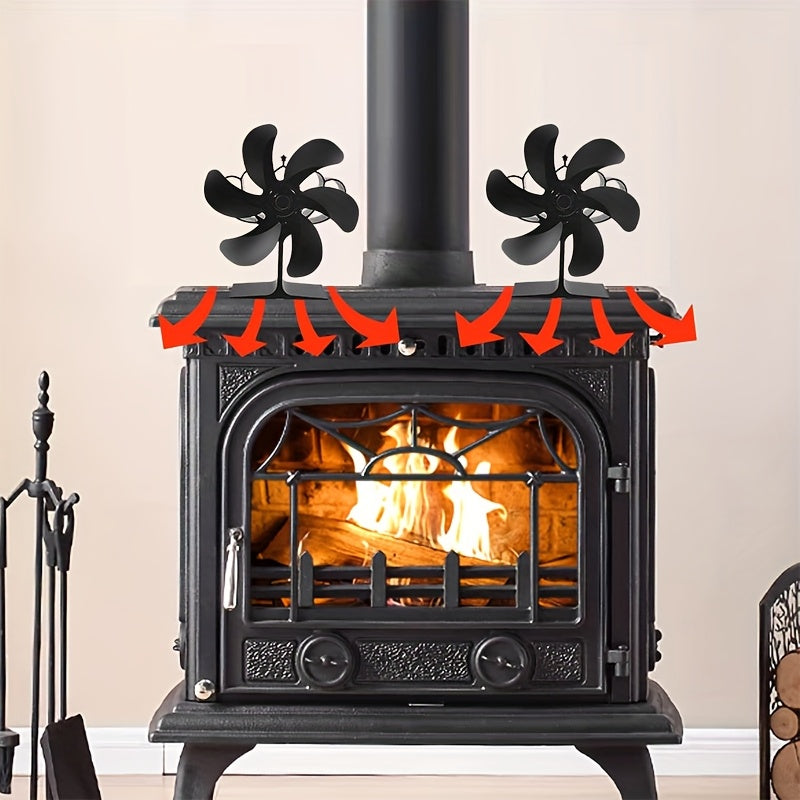 EcoPulse Issiqlik Quvvatlangan Yog'och Pechka Ventilyatori - 6-qo'zg'atuvchi alyuminiy fan bilan 1 dona to'plam, Jim yuqori tezlikda ishlash, Elektr energiyasi talab qilinmaydi, Turli komponentlar bilan to'liq, Ortqonishdan himoya qilish xususiyatlari.