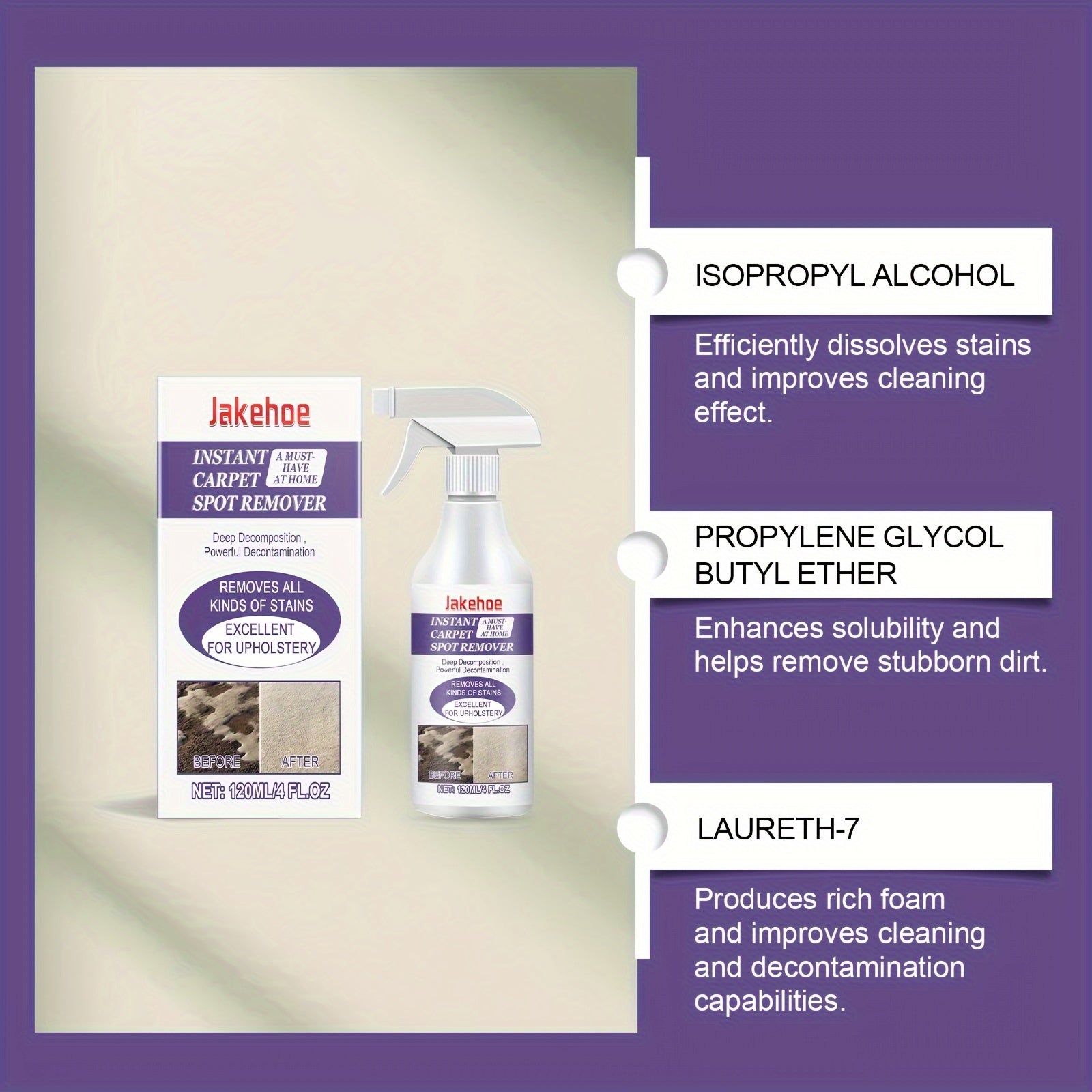 Samarali Gilam Ko'pik Tozalagichi - Dog'larni O'chiradi, Tez Quriydi, Chayish Shart Emas - Yashash xonasi va Yotoqxona tozalash uchun ideal, Uy tozalash mahsuloti, Ko'pik dog' o'chiruvchi