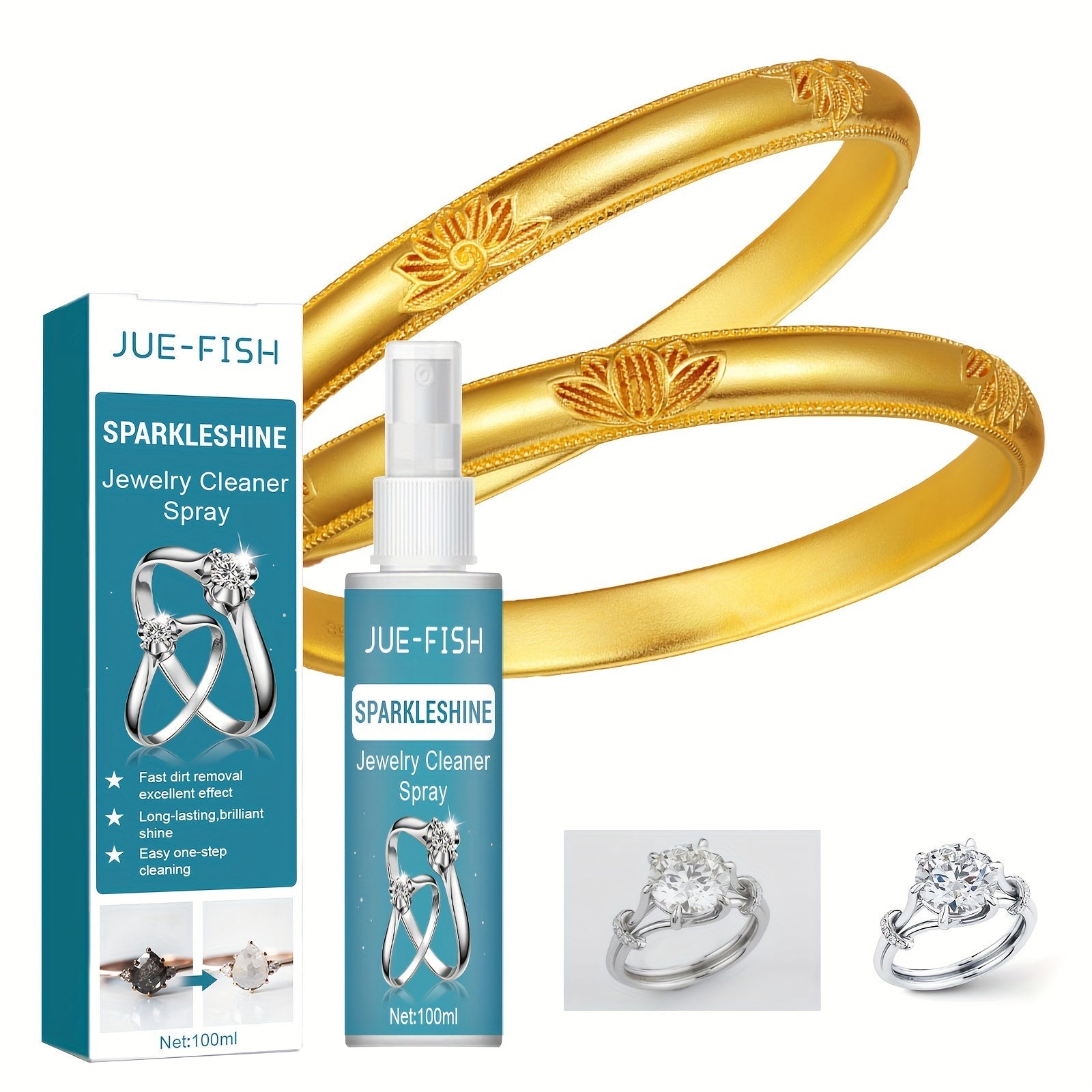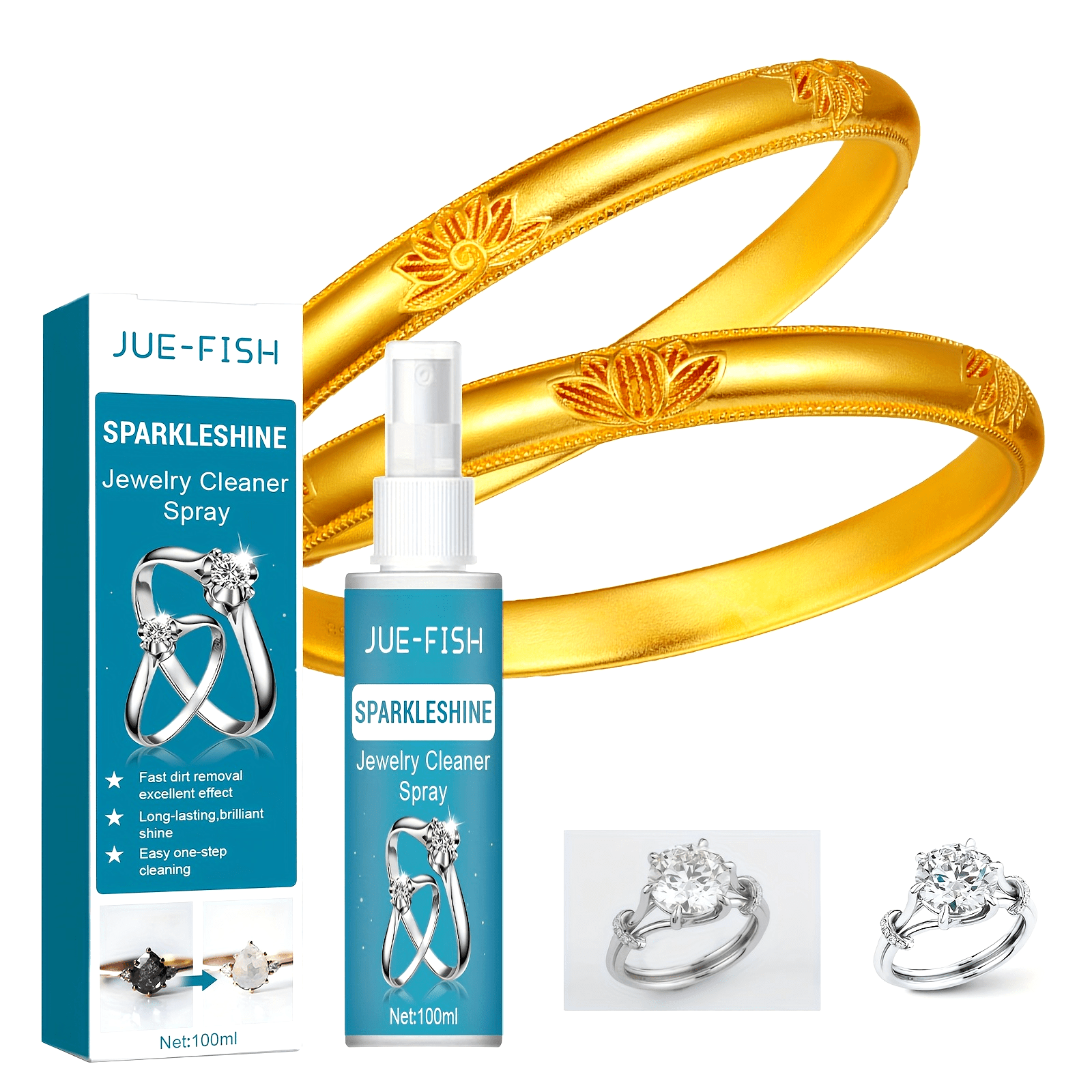 Samarali Zargarlik Tozalash Spreyi - Oltin, Kumush va Shisha ustidagi Dog'larni va Qorayishni Yo'qotadi - Uy Tozalash Uchun Mukammal