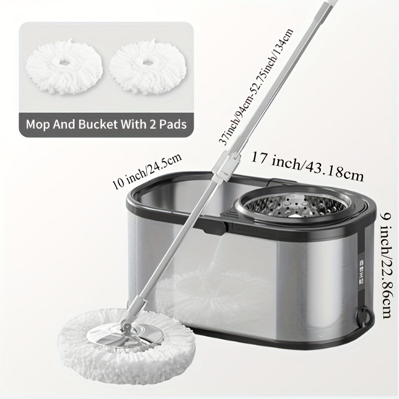 Qayta ishlatiladigan yostiqlari bilan zanglamaydigan po'latdan yasalgan Spin Mop va kova to'plami, ho'l va quruq polni tozalash uchun