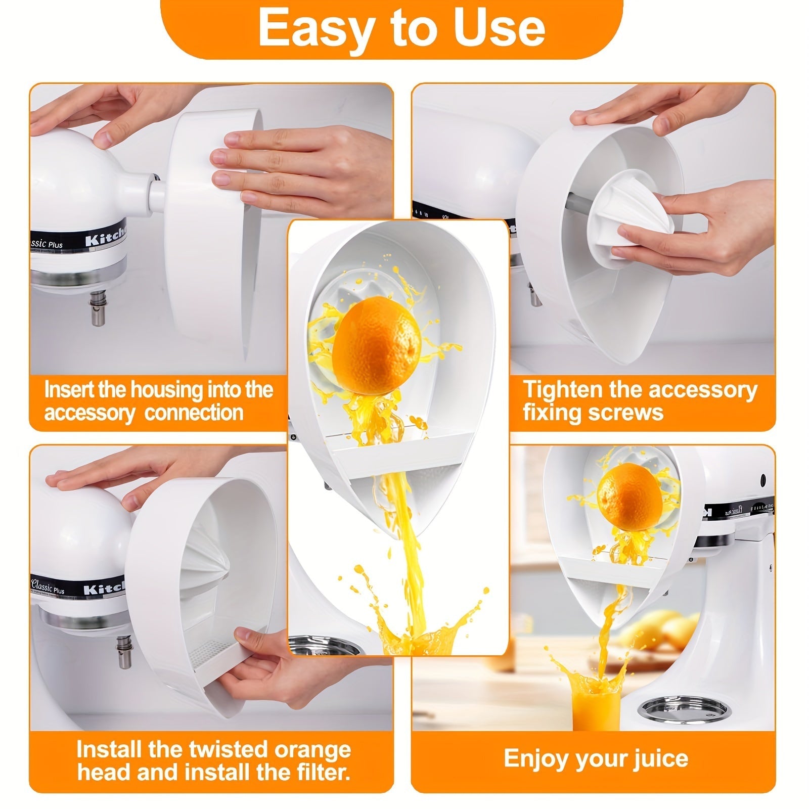 Oson tozalash uchun Stand Mixer Suyuq meva qo'shimchasi - Apelsin va boshqa mevalarni siqish uchun ajoyib, Kitchenaid blenderlariga mos keladi.