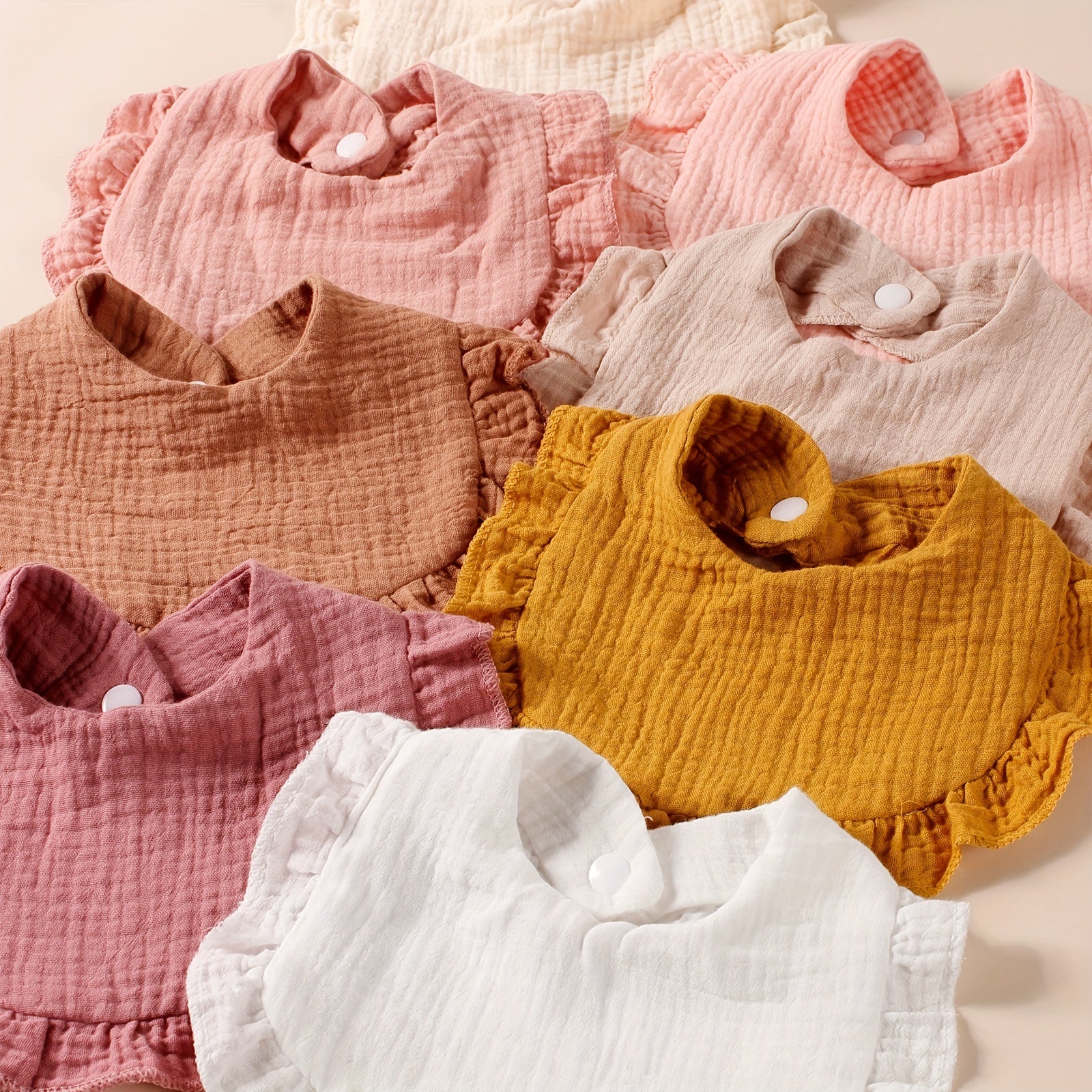 Suv o'tkazmaydigan va nafas oladigan matodan tayyorlangan, bolani oziqlantirish va toza saqlash uchun ideal bo'lgan 2-qavatli yumshoq biblardan sakkiz dona. Ushbu yoqimli paxta ruffle biblar, tupurik va to'kilmalarning oldini olish uchun mukammaldir.