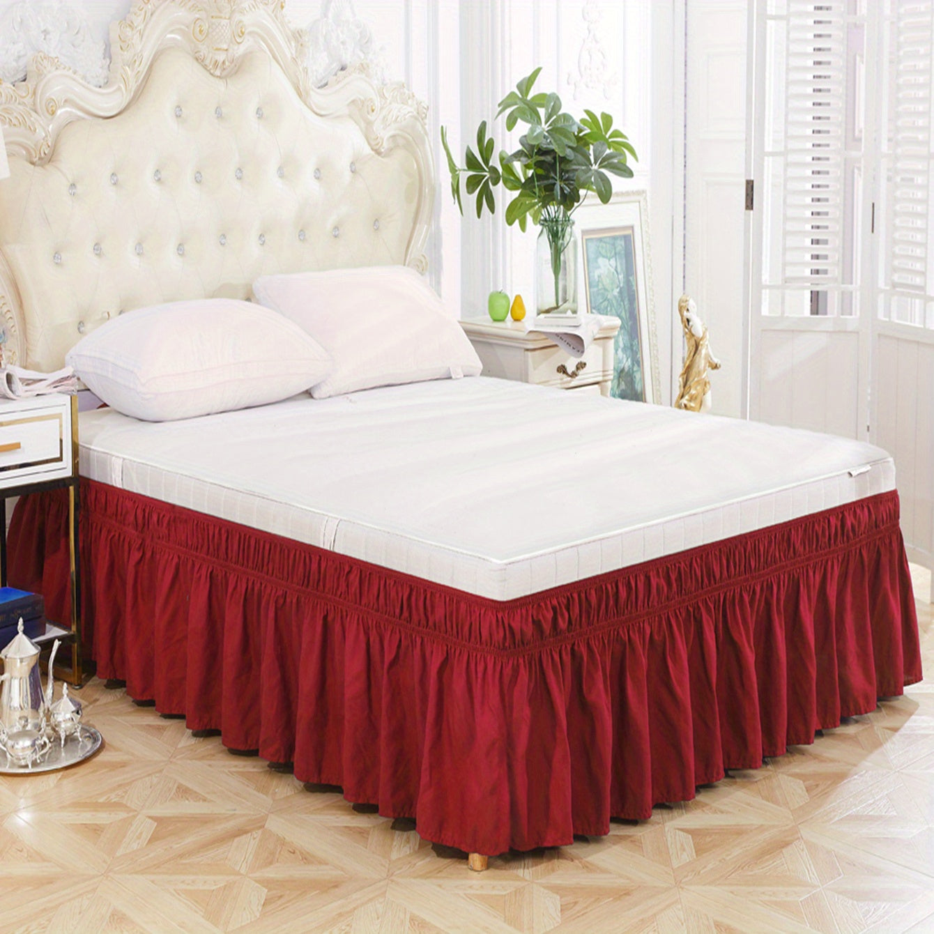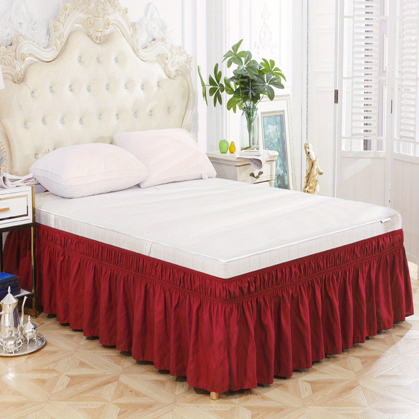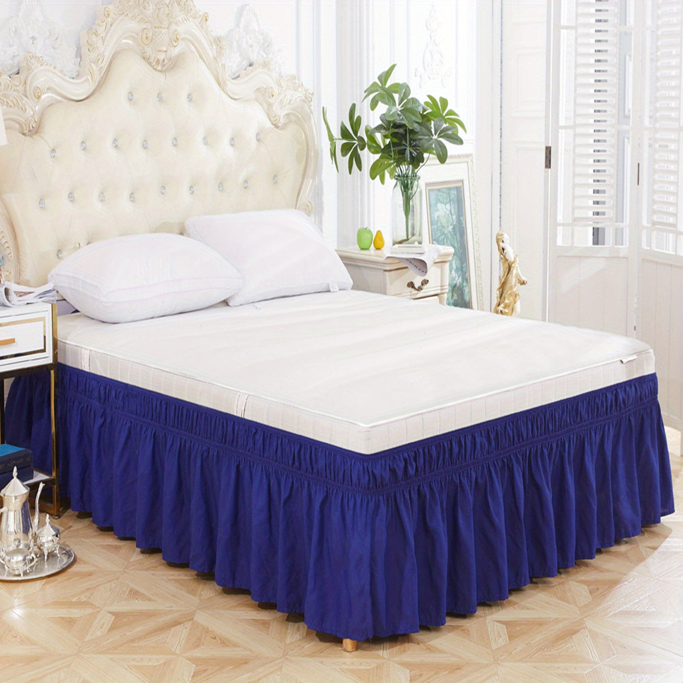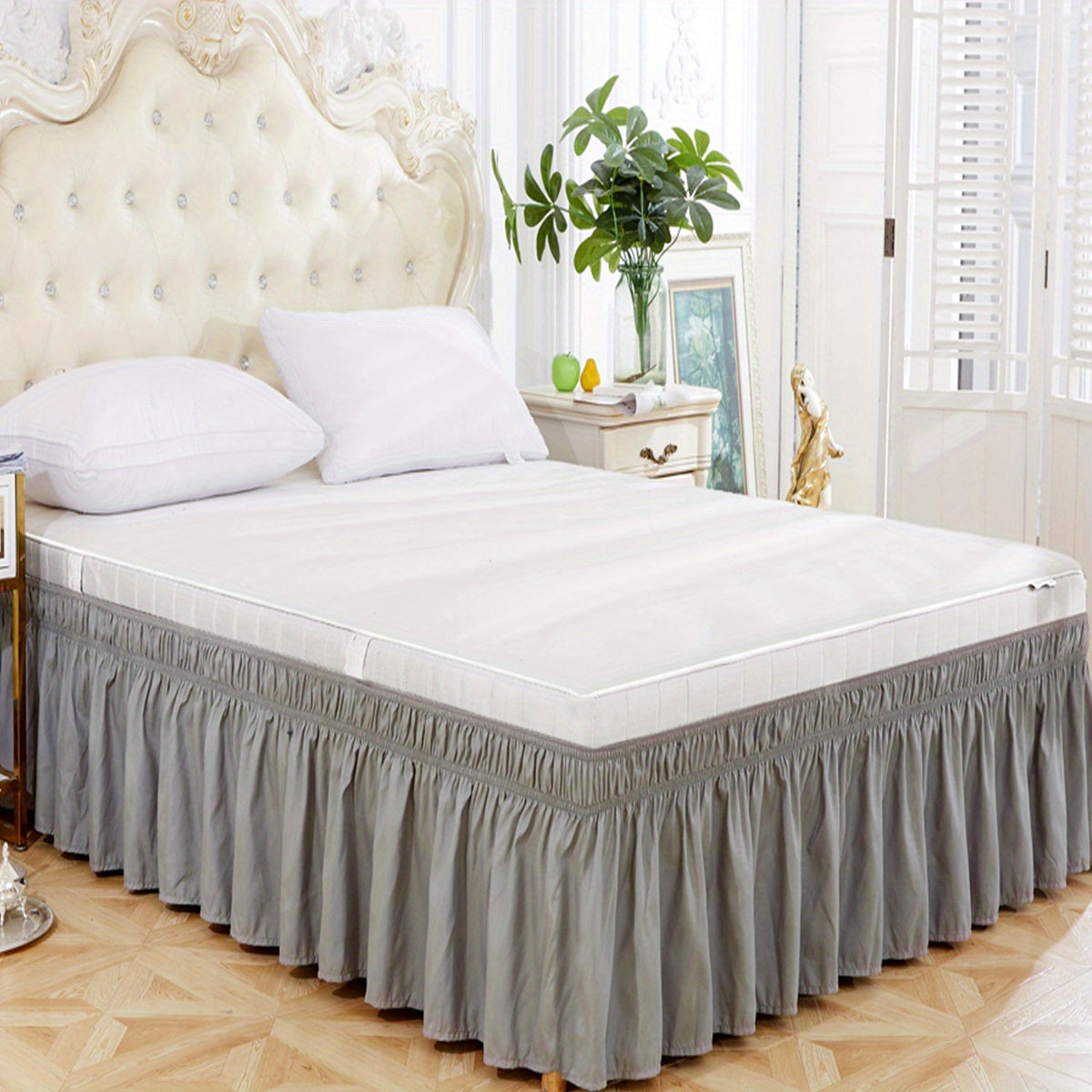 Toza rangdagi elastik yostiq qoplamasi, yumshoq yotoq jihozlari, qulay va bardoshli foydalanish uchun lotus bargi qirralari dizayni, yotoqxona yoki mehmonxonada. Teriga do'st material.