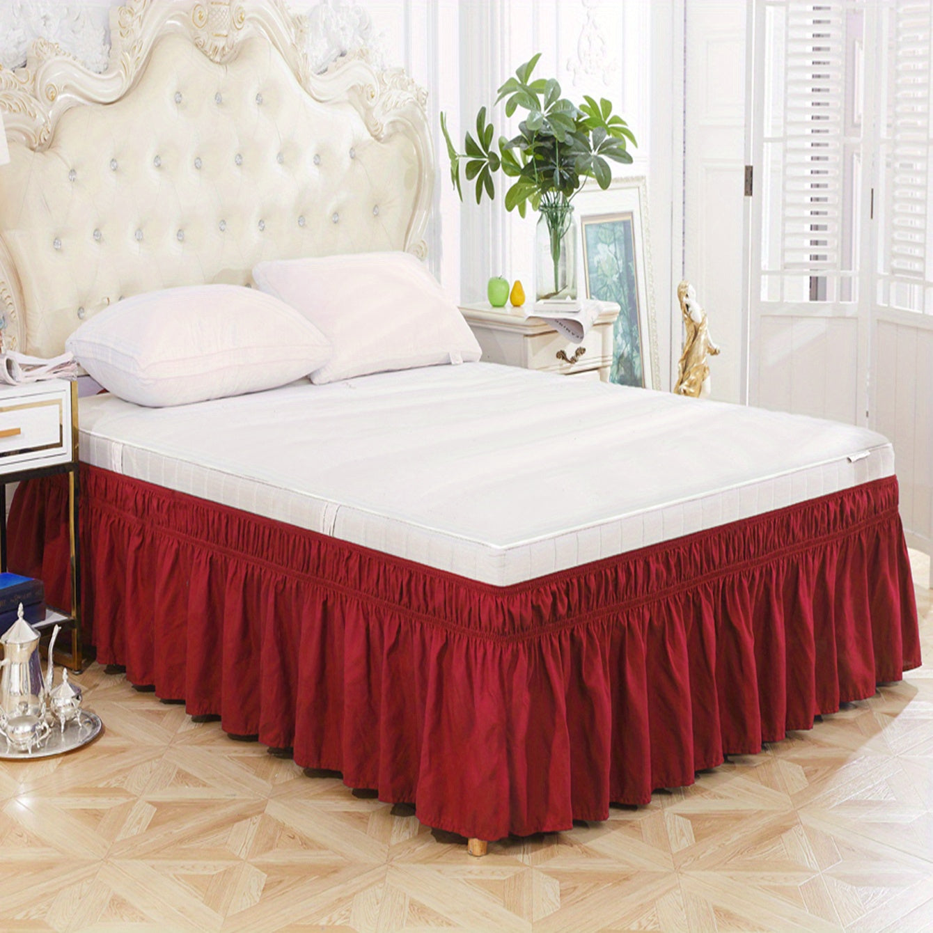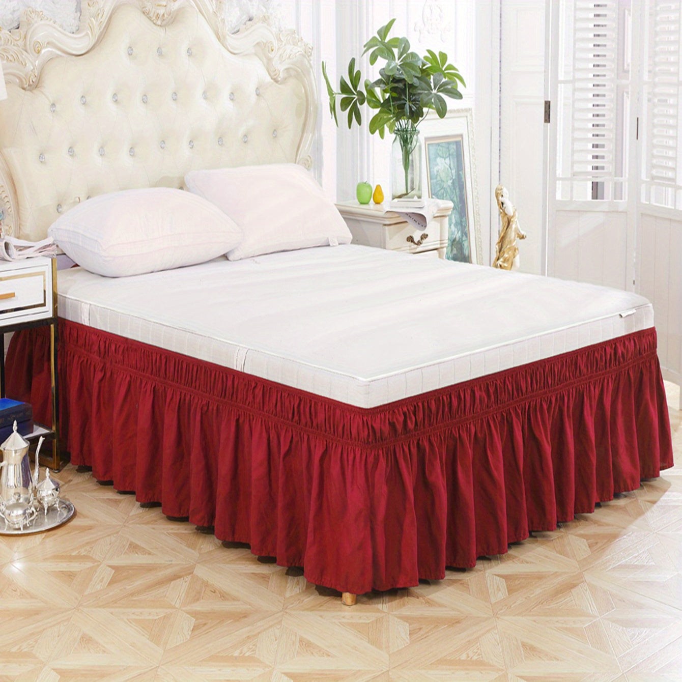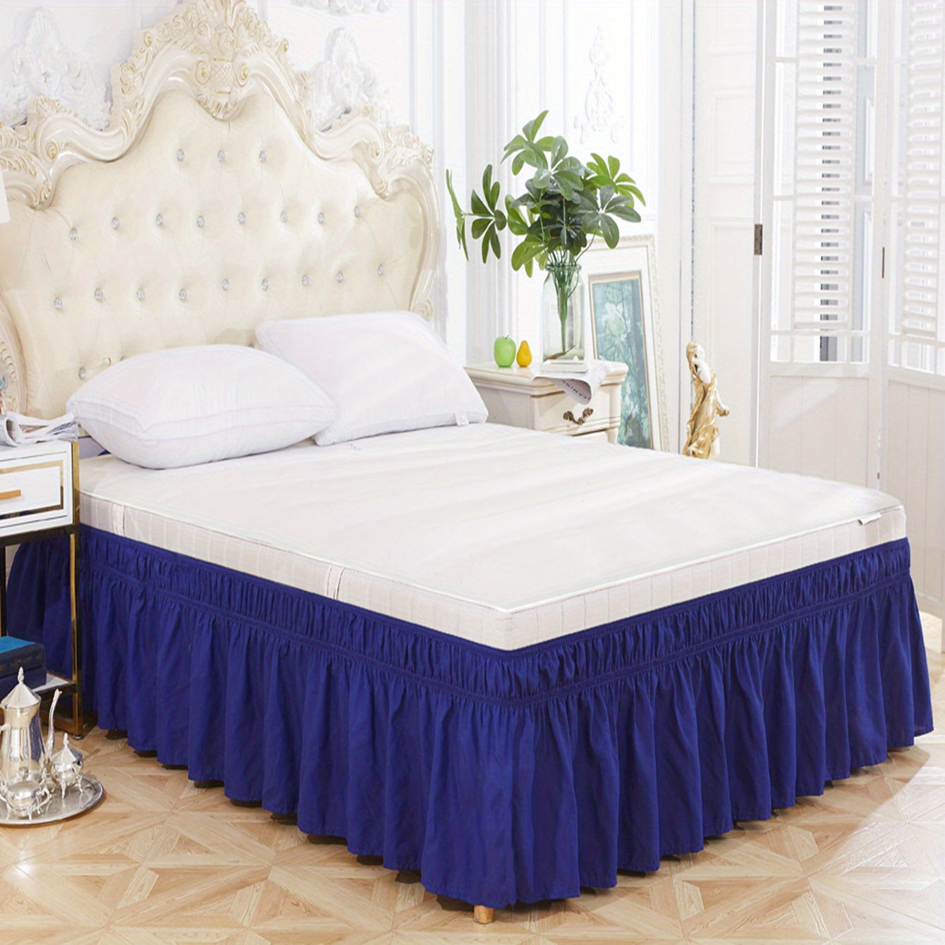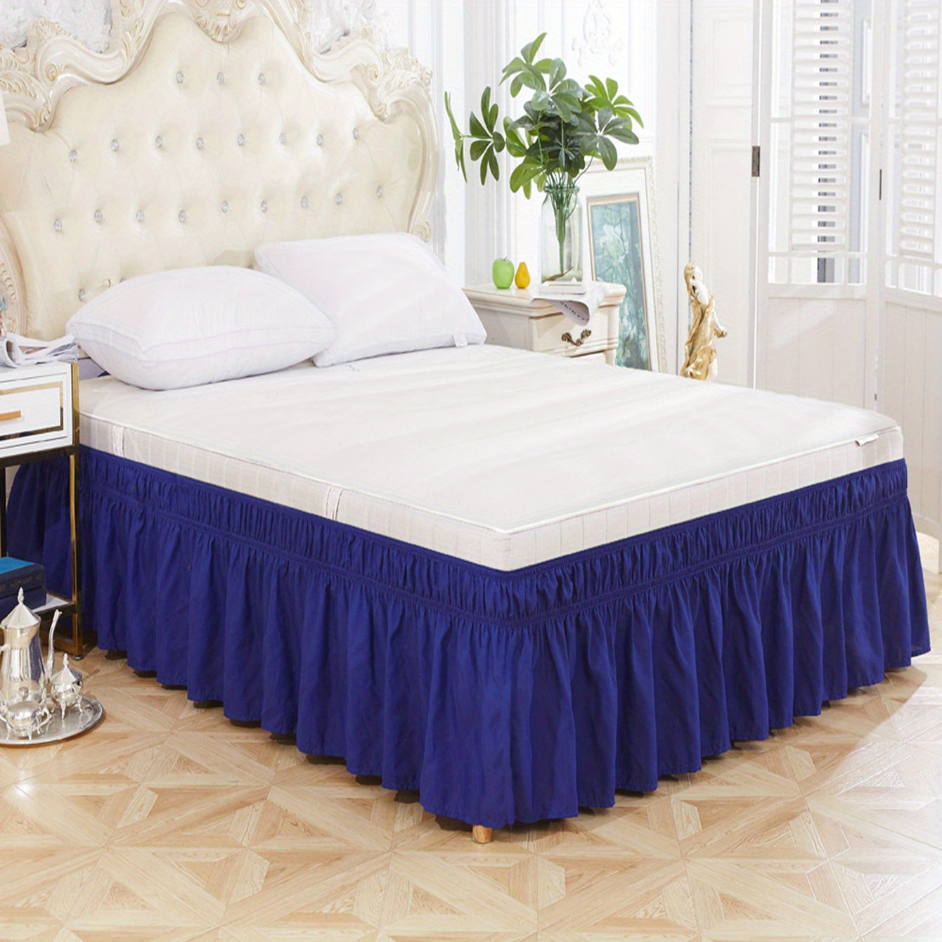 Toza rangdagi elastik yostiq qoplamasi, yumshoq yotoq jihozlari, qulay va bardoshli foydalanish uchun lotus bargi qirralari dizayni, yotoqxona yoki mehmonxonada. Teriga do'st material.