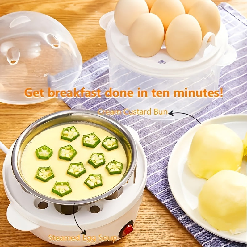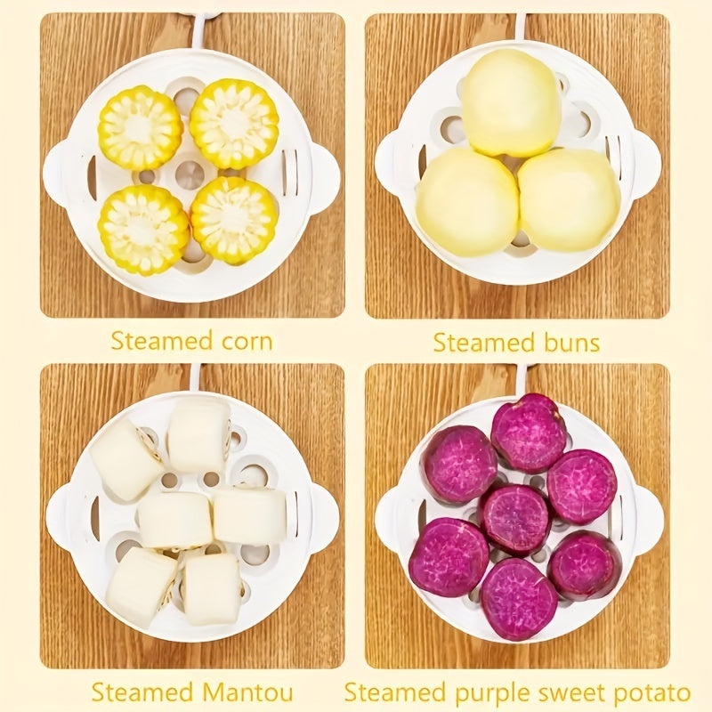 Avtomatik o'chirish bilan elektr tuxum pishirgich, Yevropa standarti rozetkasi va 7-14 tuxum sig'imi bilan turli pishirish uslublari uchun oq rangda.