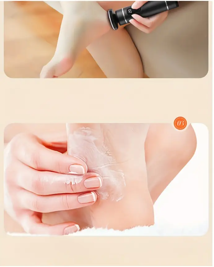 USB zaryadlash bilan elektr oyoq maydalagichi, ichki 1200 mA batareya va raqamli displey. Poyabzal kalluslarini olib tashlash uchun kuchli va yuqori quvvatli asbob. Yengil bej rangi.