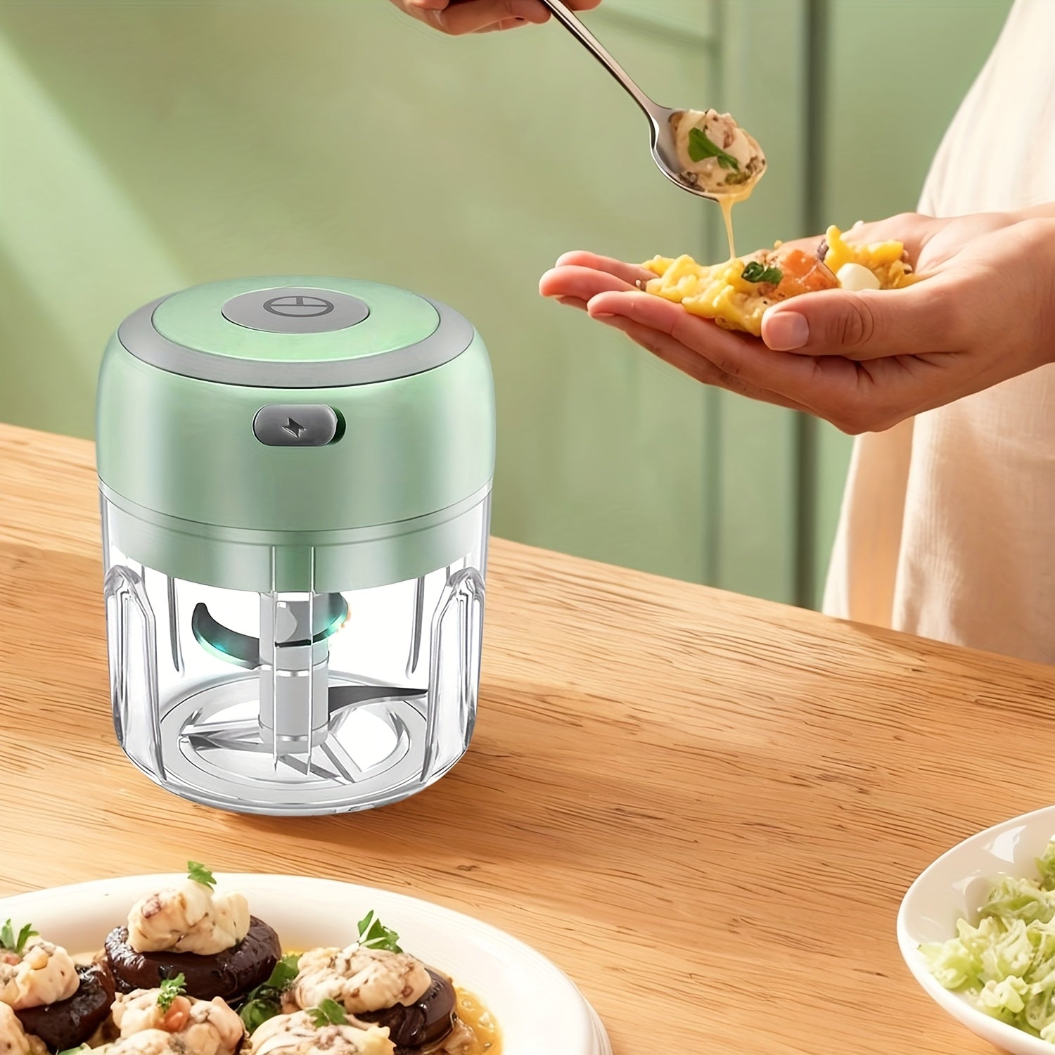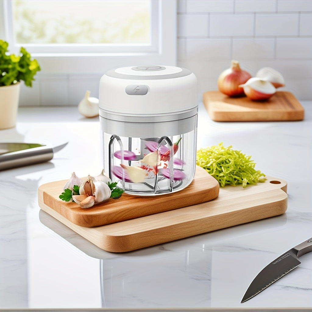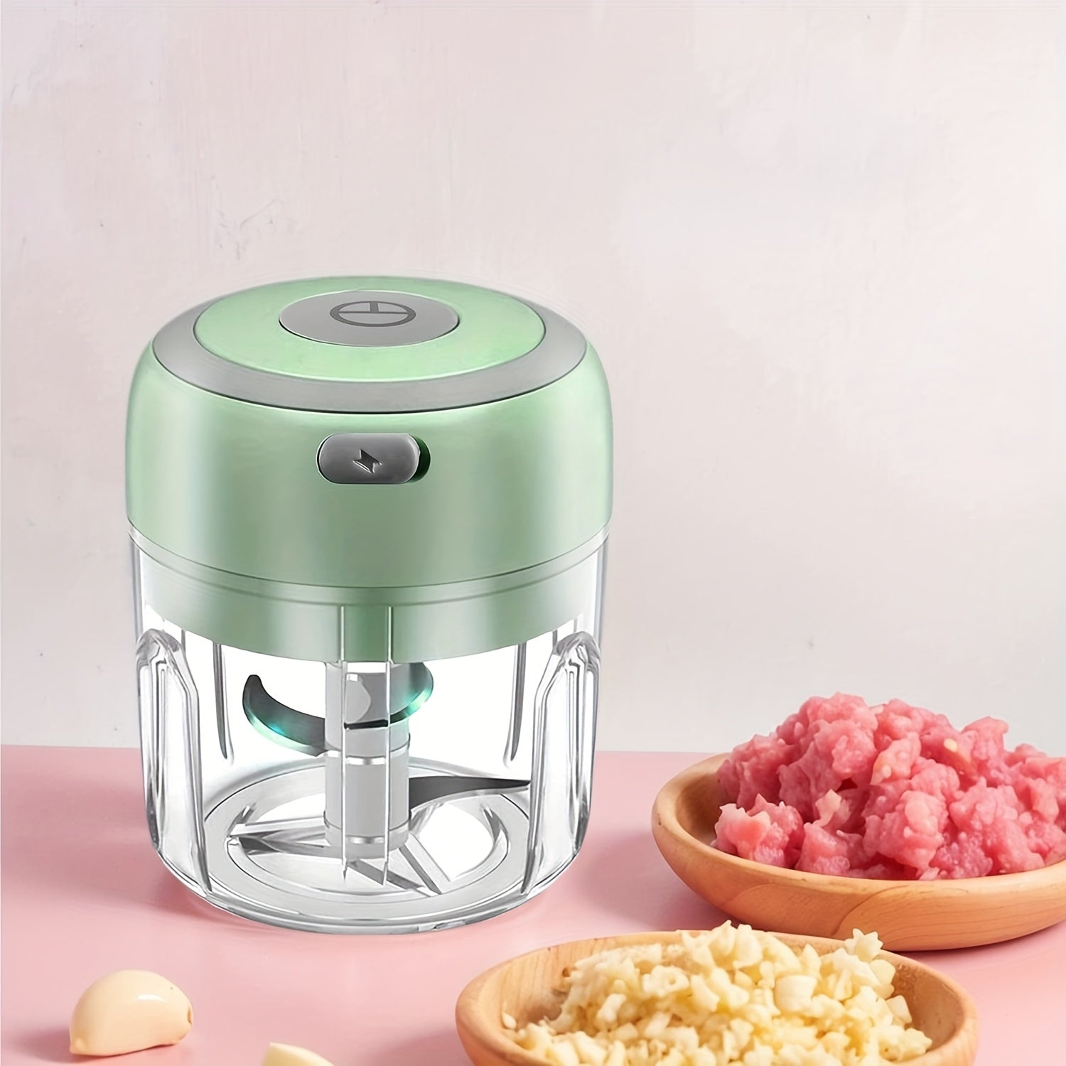 Elektr garlic masheri: Avtomatik go‘sht aralashtirish va to‘ldirish imkoniyatlariga ega ko‘p funksiyali oshxona oziq-ovqat protsessori. 8.45oz sig‘imi, USB orqali qayta zaryadlanadi, sabzavotlarni maydalash uchun 3 ta pichoq.