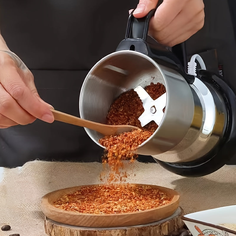 Kofe, ziravorlar va donlar uchun elektr maydalagich, bitta tugma bilan ishlash, ortiqcha qizishdan himoya, aniq maydalash va oson saqlash imkoniyatiga ega. 220V AQSh rozetkasi.