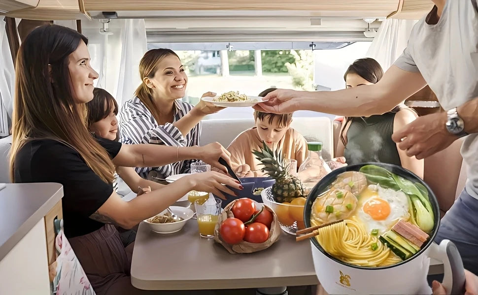 Yotoqxona, ofislar va karavonlar uchun elektr issiq qozon. Qaynatish, bug'lash, qovurish va qovurish uchun ko'p funksiyali. Yopishmaydigan yuzasi Evropa standarti rozetkasi bilan.
