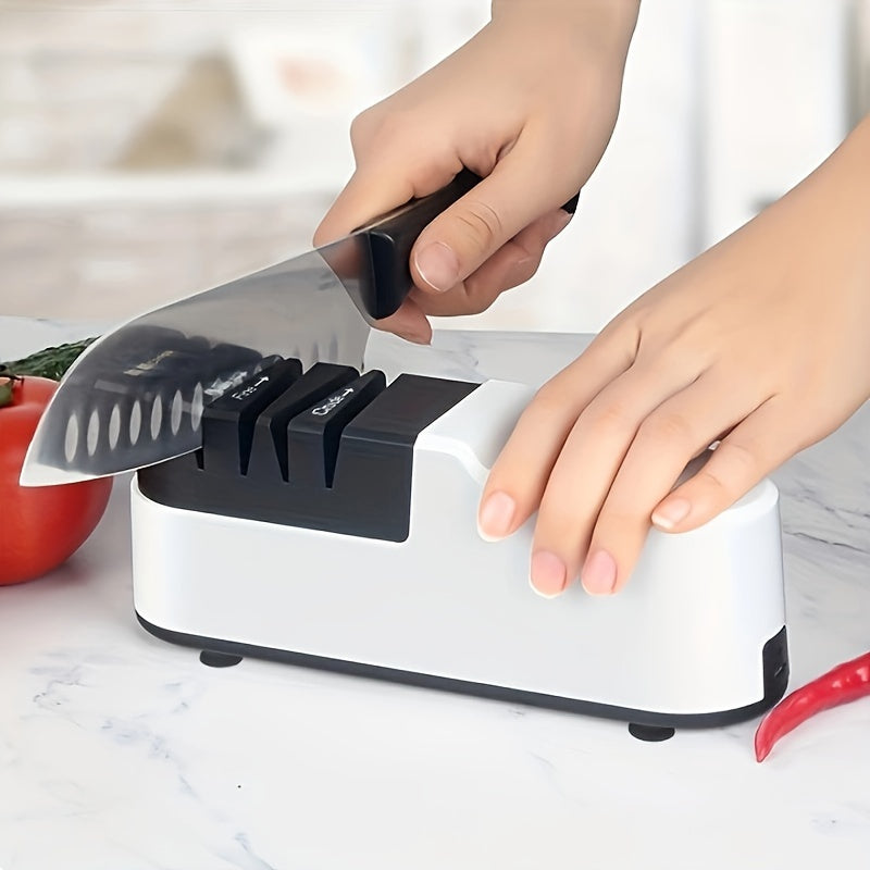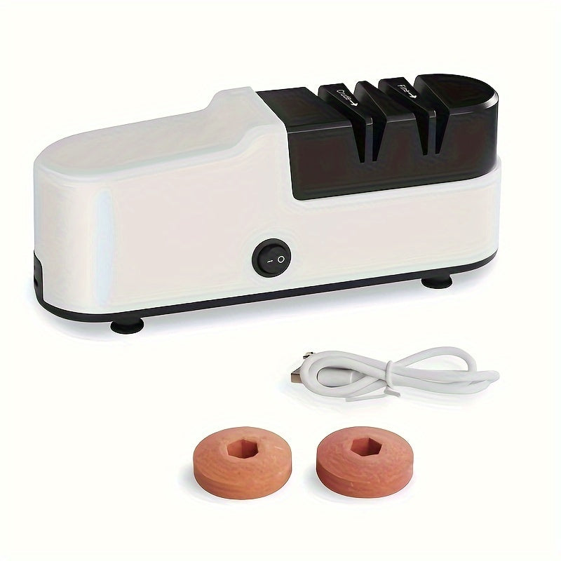 Avtomatik funktsiyaga ega elektr pichoq o'tkirlagichi, 1300mAh litiy batareyasi bilan USB orqali zaryadlanadigan, o'rtacha qattiqlikdagi o'tkirlik uchun mos, lagerda va oshxonada foydalanish uchun portativ, mustahkam plastikdan tayyorlangan.