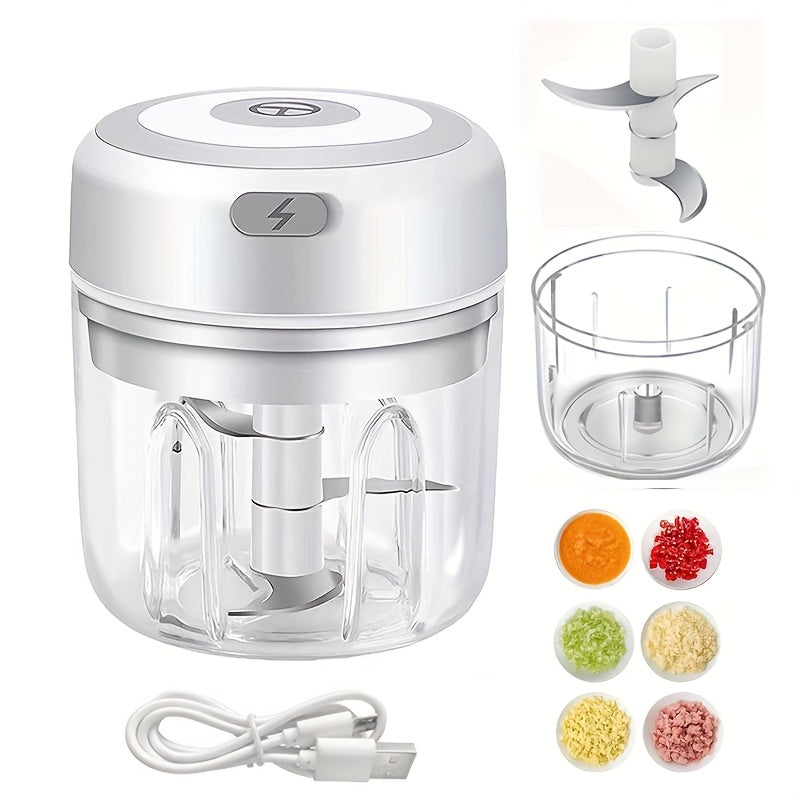 USB simsiz zaryadlash bilan elektr mini chopper, 100/250ml sig'im. Piyoz, chili, selderey va zanjabilni maydalash uchun xavfsiz va mustahkam dizayn. Pikniklar va kundalik foydalanish uchun mukammal. Made of