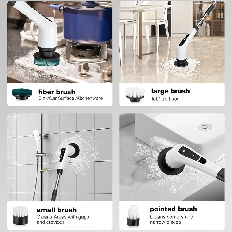 Simsiz cho'tka, batareya darajasi ko'rsatkichi, 9 ta cho'tka boshli, ikki tezlik va teleskopik tutqichga ega elektr aylanuvchi tozalovchi. Oshxonalar, yashash xonalari va hammomlar uchun ideal.