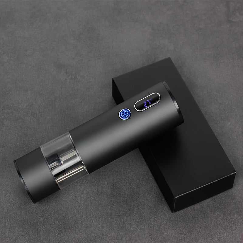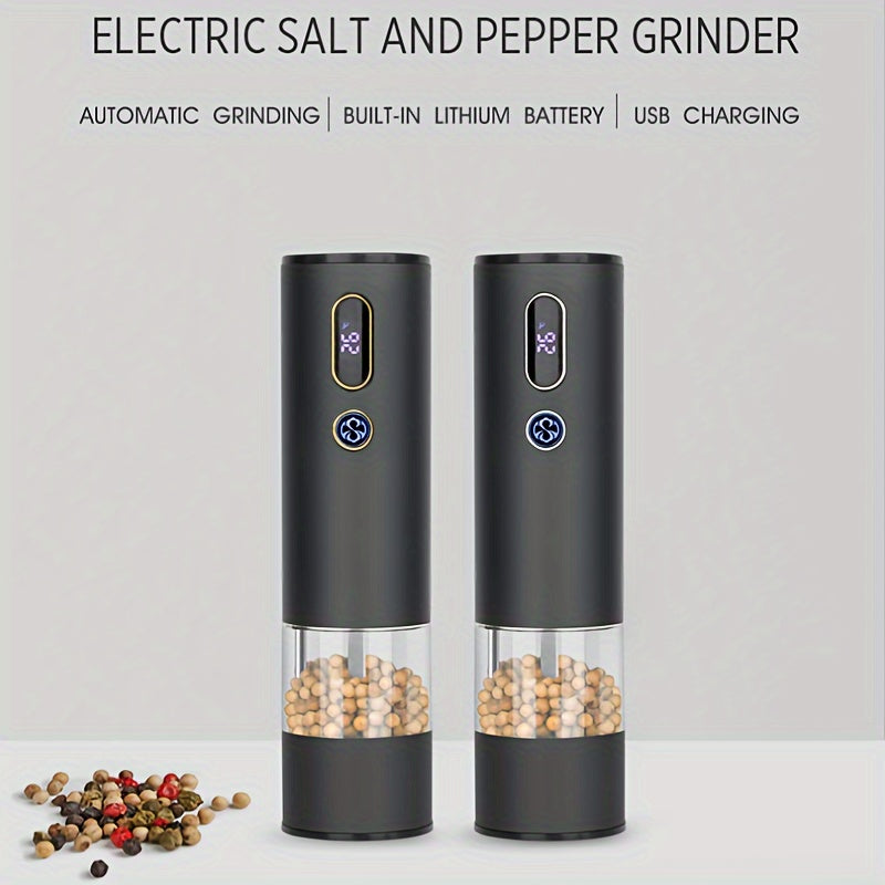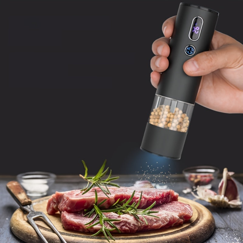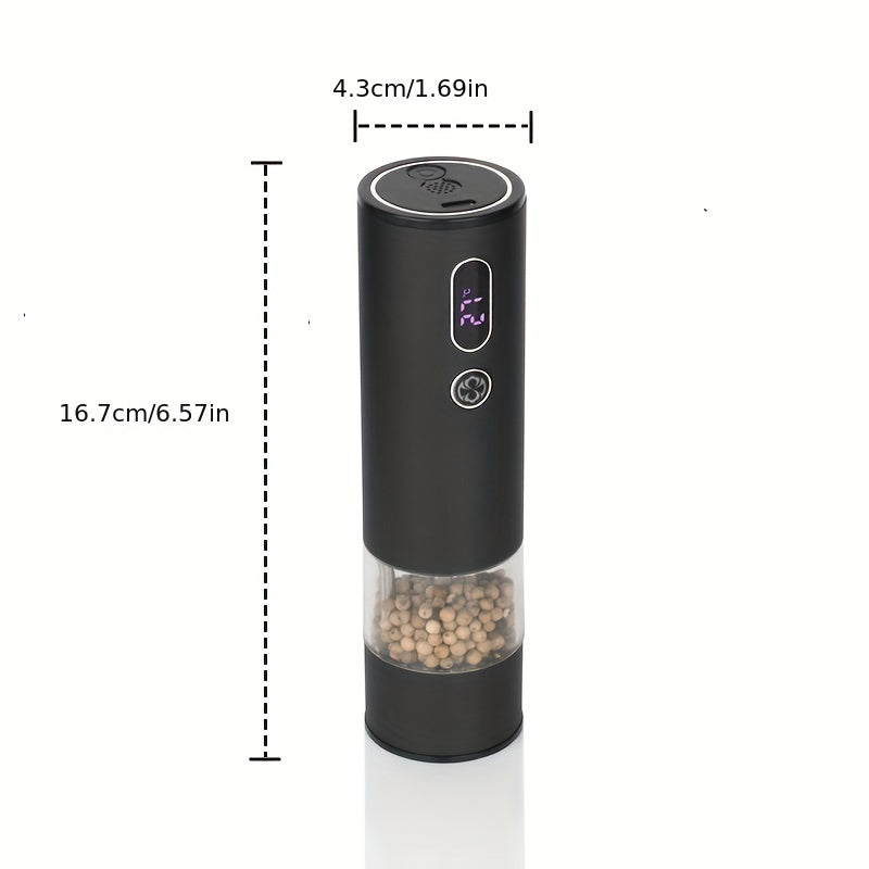 T touch switch bilan elektr tuz va murch maydalagich, harorat va namlik ko'rsatkichi, litiy batareya, LED chiroq, bitta qo'l bilan ishlash, sozlanadigan maydalash, qora shaker, oshxona asbobi.