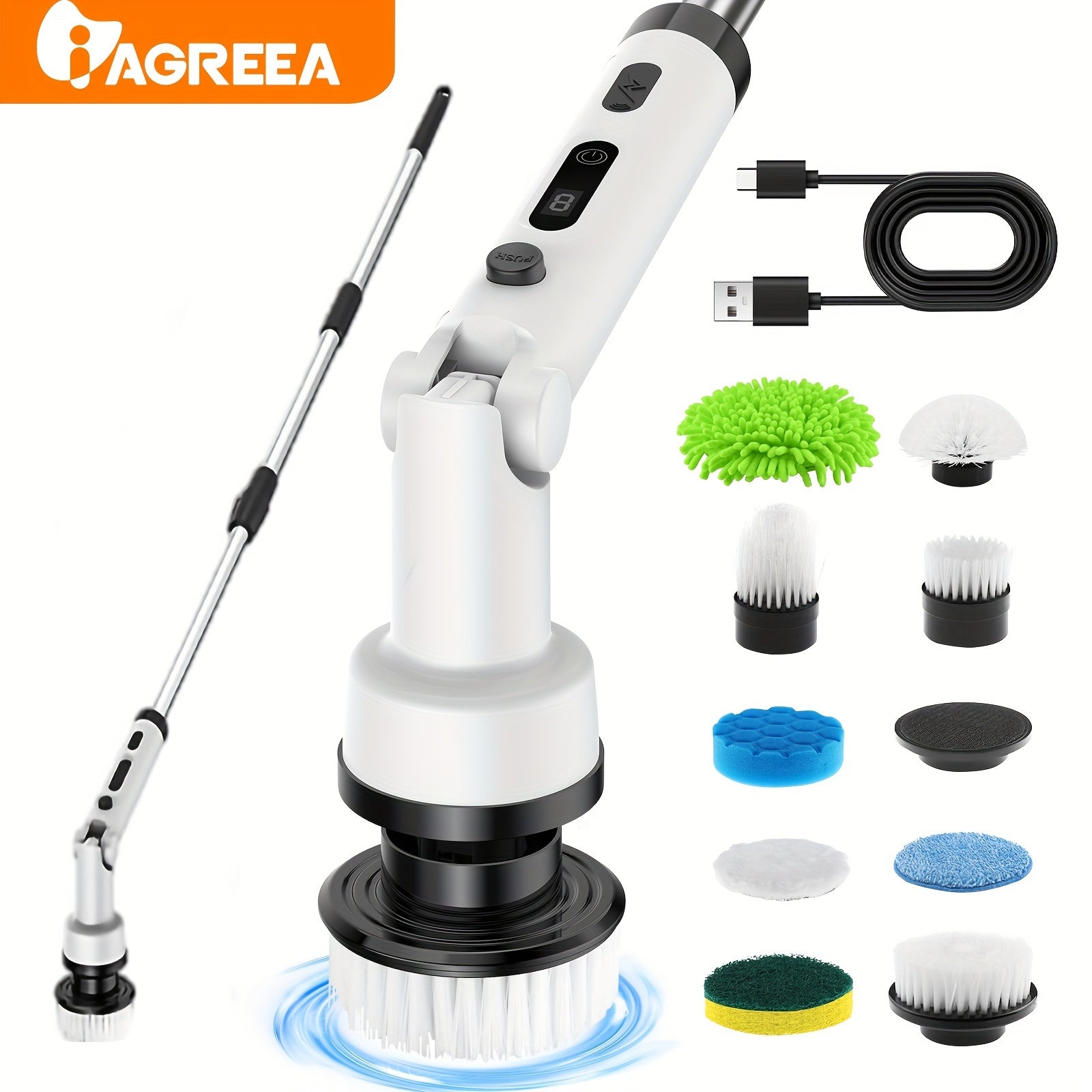 Elektr aylantiruvchi cho'tka 9/6 almashtiriladigan cho'tkalar bilan, simsiz tozalash cho'tkasi uzaytiriladigan tutqich bilan, zaryadlanadigan dush cho'tkasi hammom, oshxona, vannaxonalar, plitkalar, dush va avtomobil tozalash uchun.