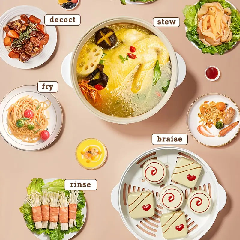 2L keramika qoplamali idishli elektr pechka, ikki tomonlama quvvat, bifshteks, makaron, issiq qozon, ramen uchun ko‘p funksiyali pishirgich. Tez isitish, ortiqcha issiqlikdan himoya.