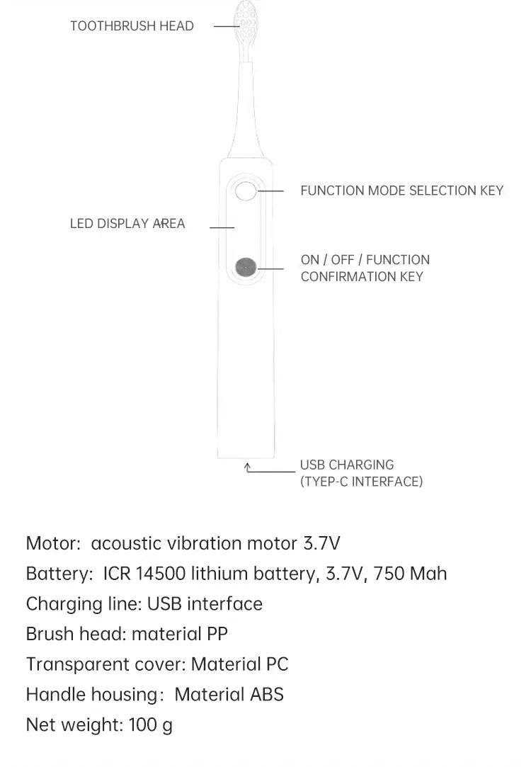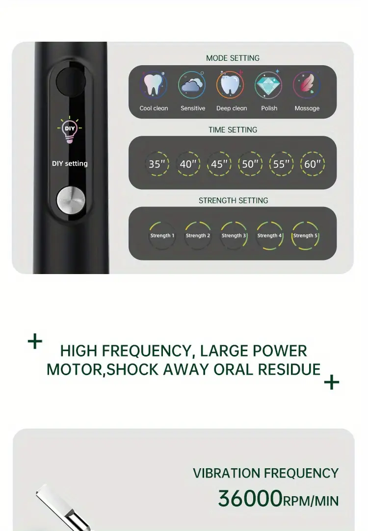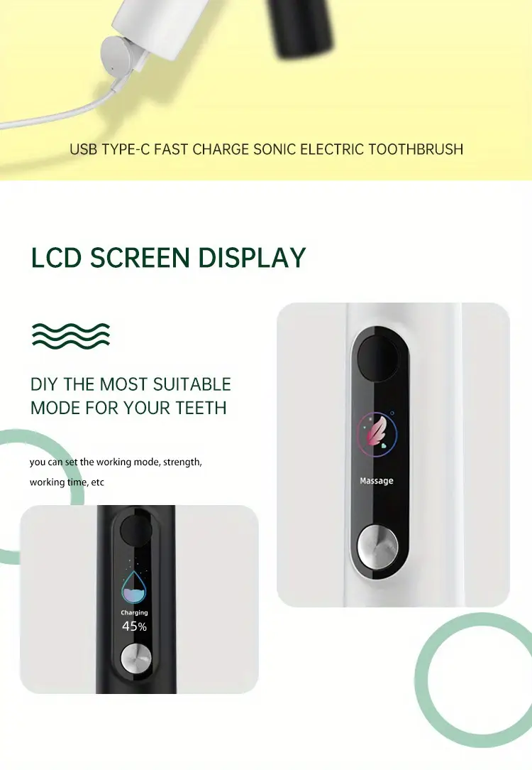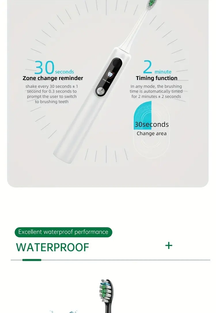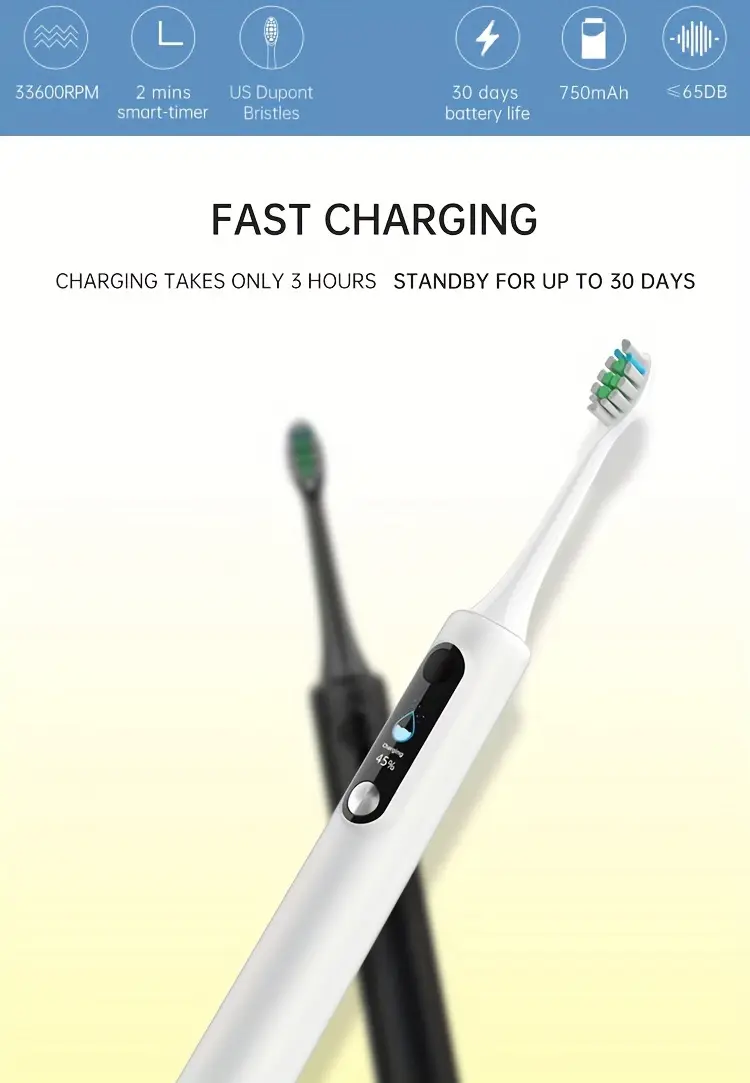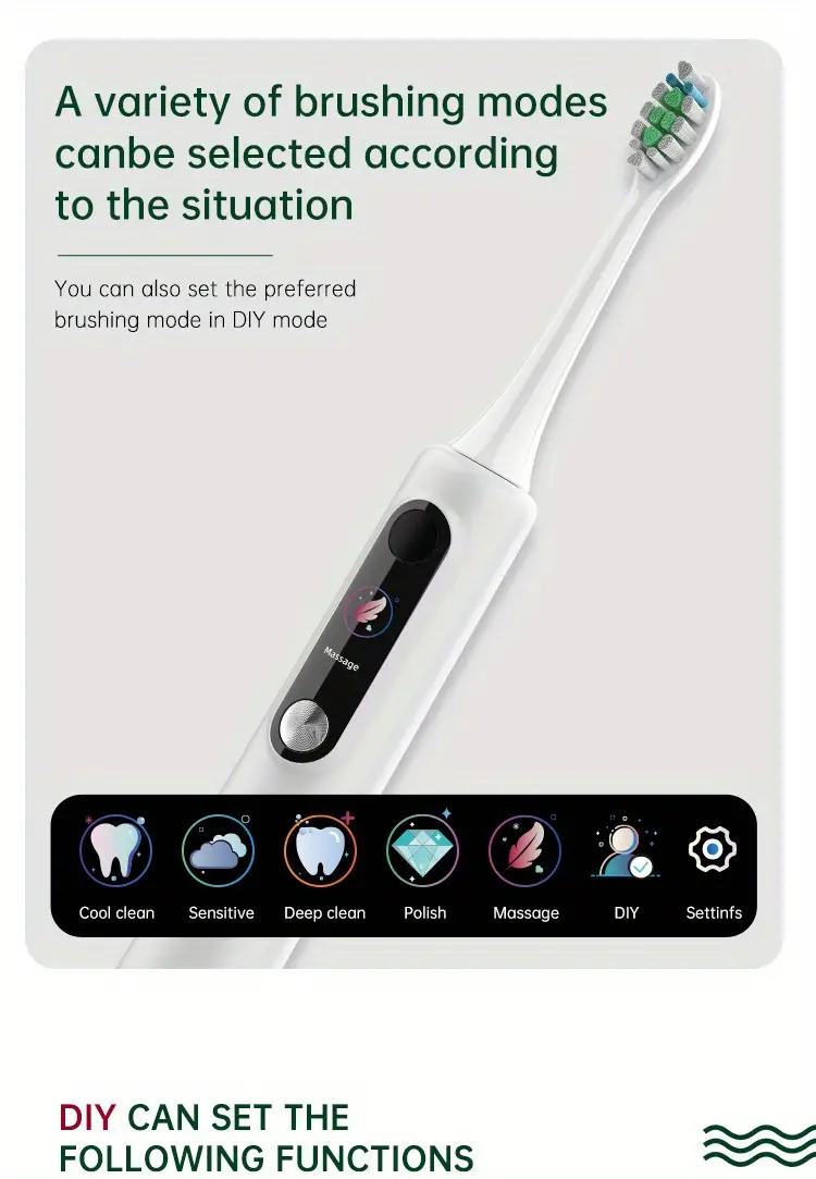 Ekran ko'rsatuvli elektr tish cho'tkasi, magnit levitatsiyasi, yumshoq cho'tka sochlari