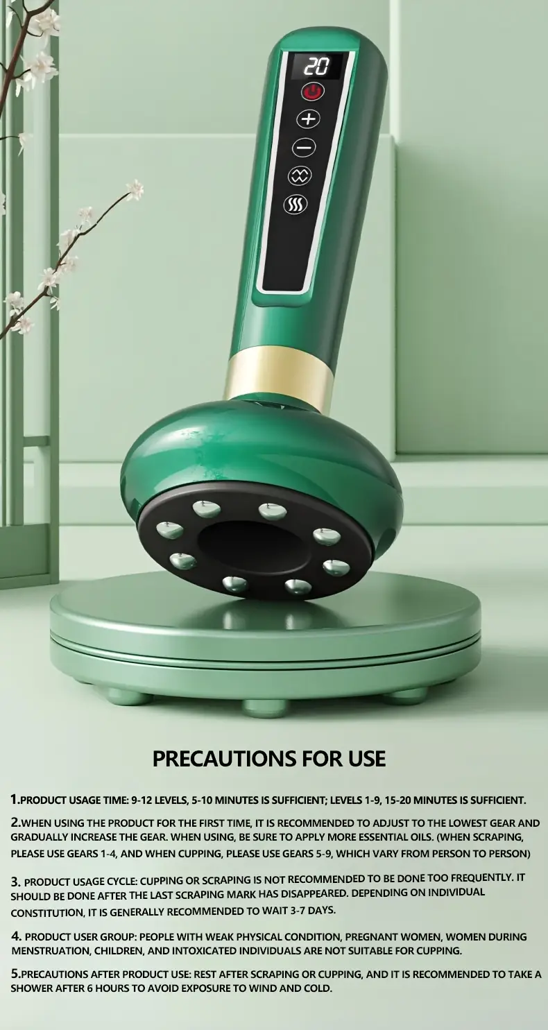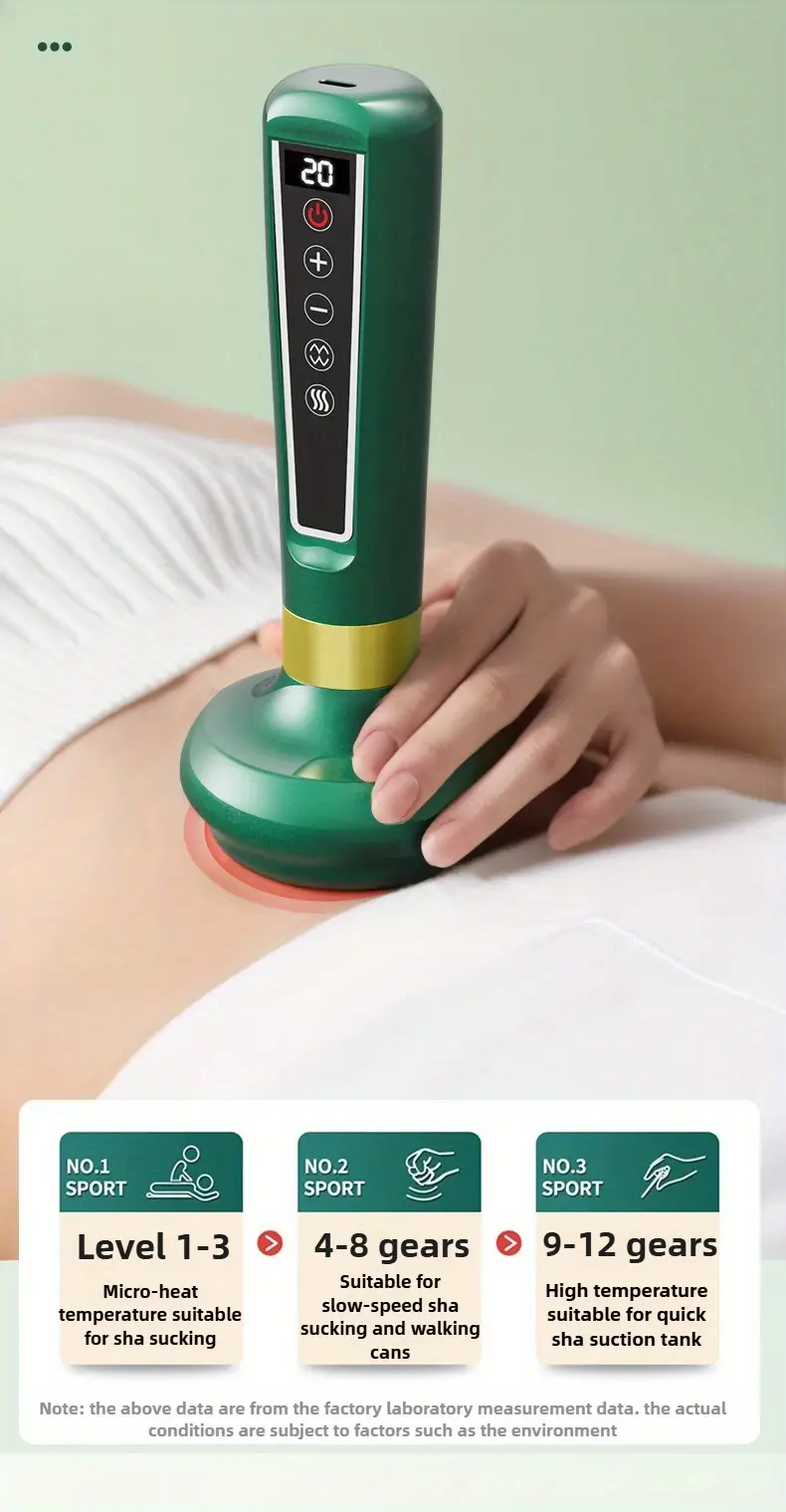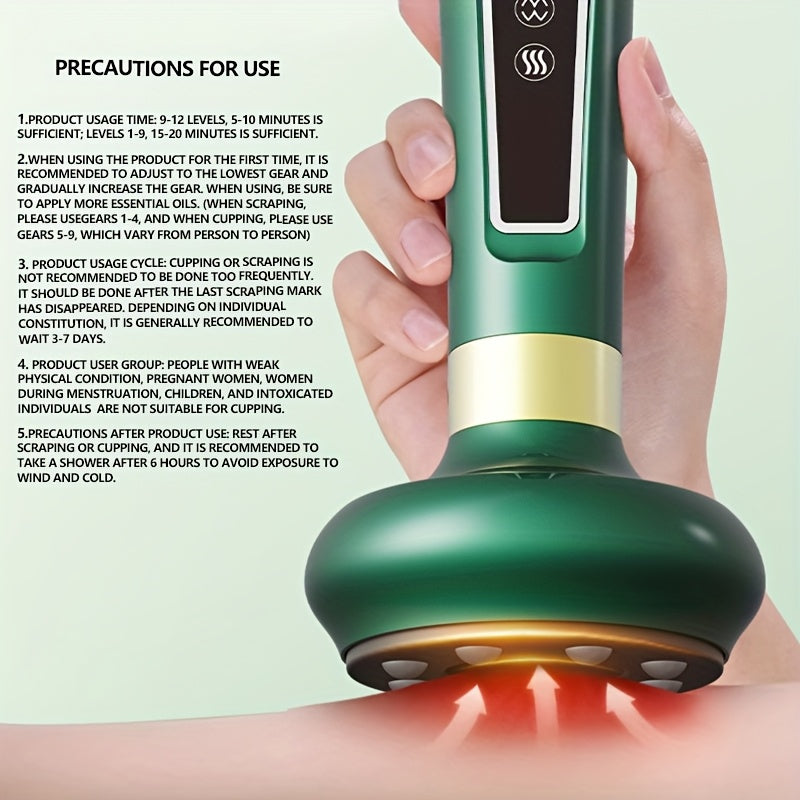 Elektr vakuum kubok massajchisi, 8 ta po'lat shar, 12 ta sozlanadigan tish, issiq siqish, raqamli ekran, USB zaryadlash va 1800mAh batareya bilan.