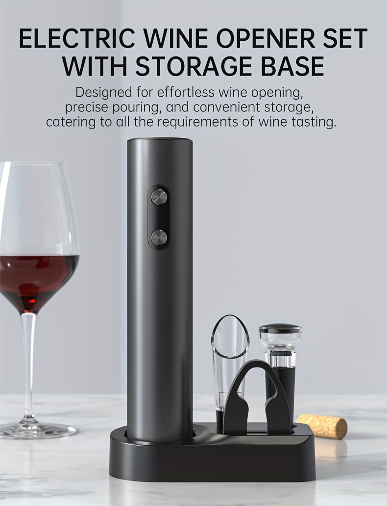Elektrik sharob shishasi ochgich to'plami, folga kesuvchi, quyuvchi, yopuvchi va saqlash bazasi bilan