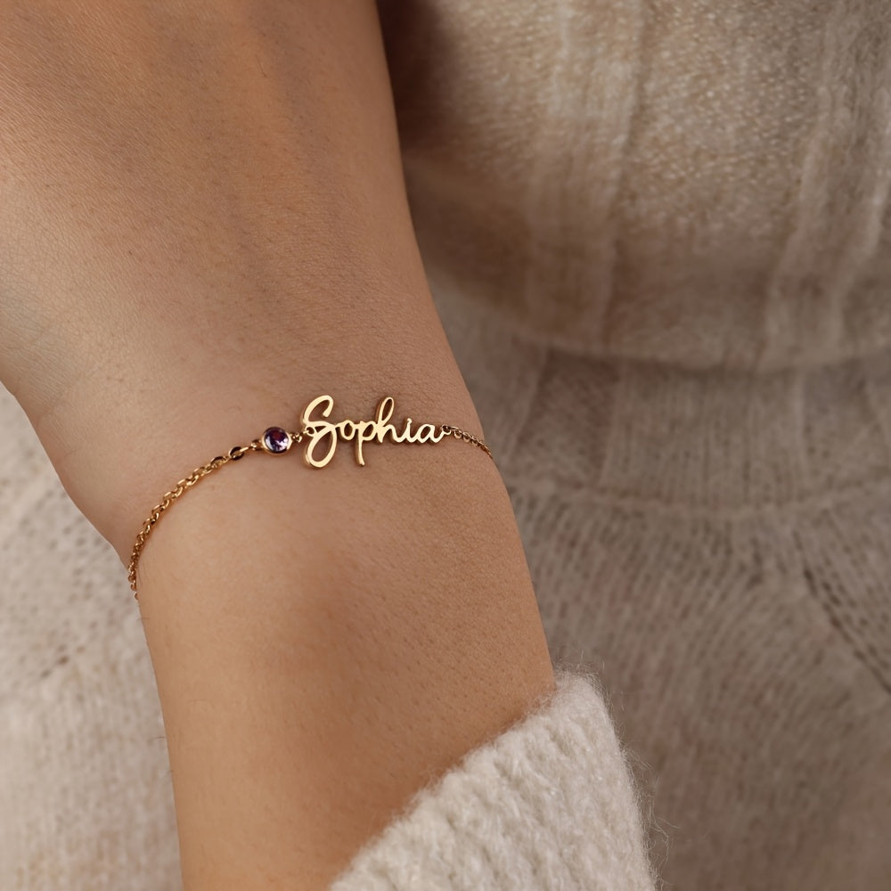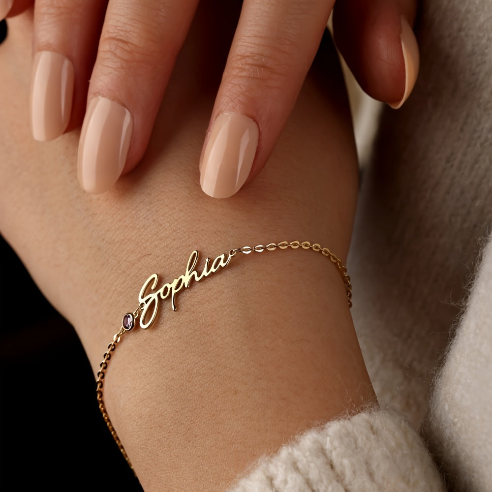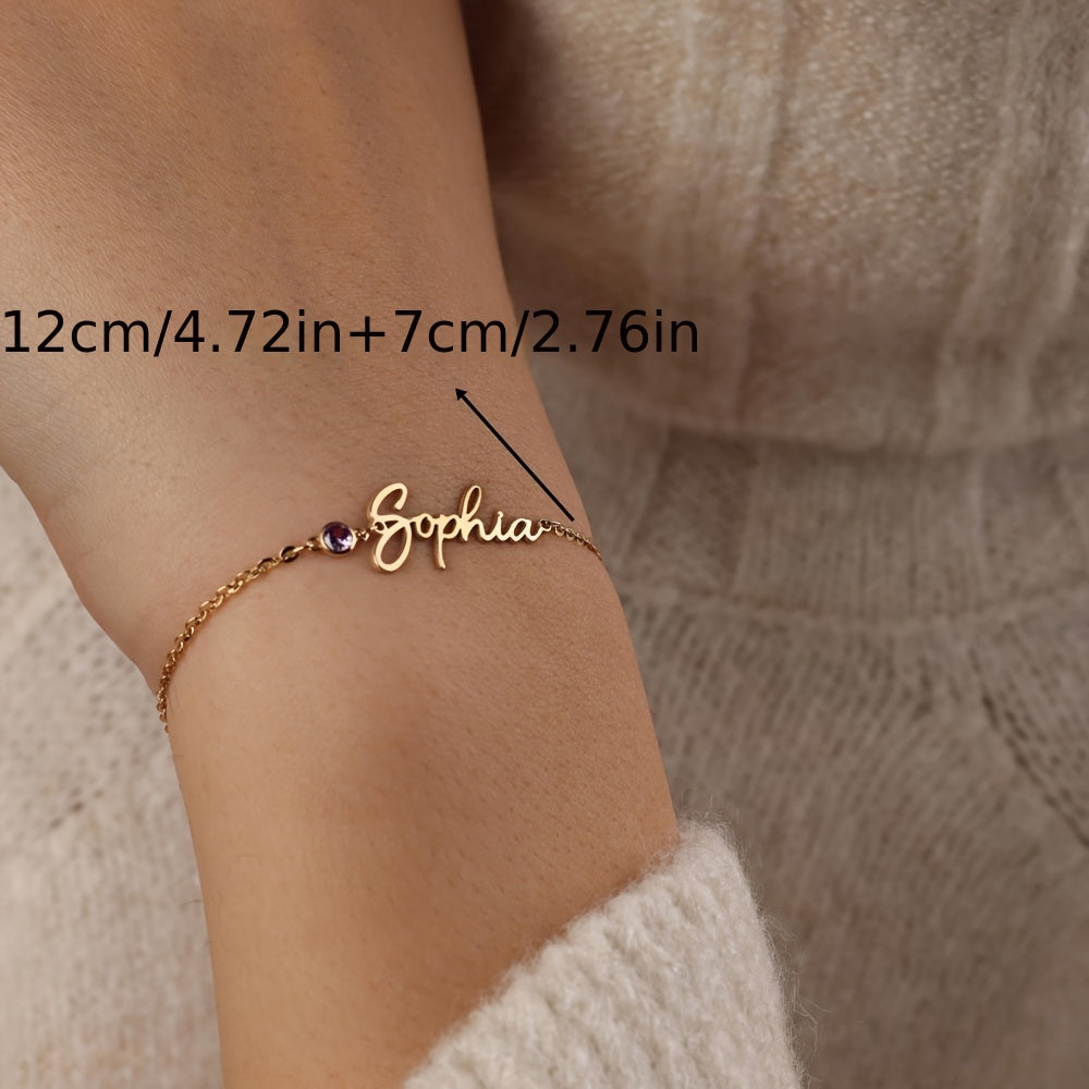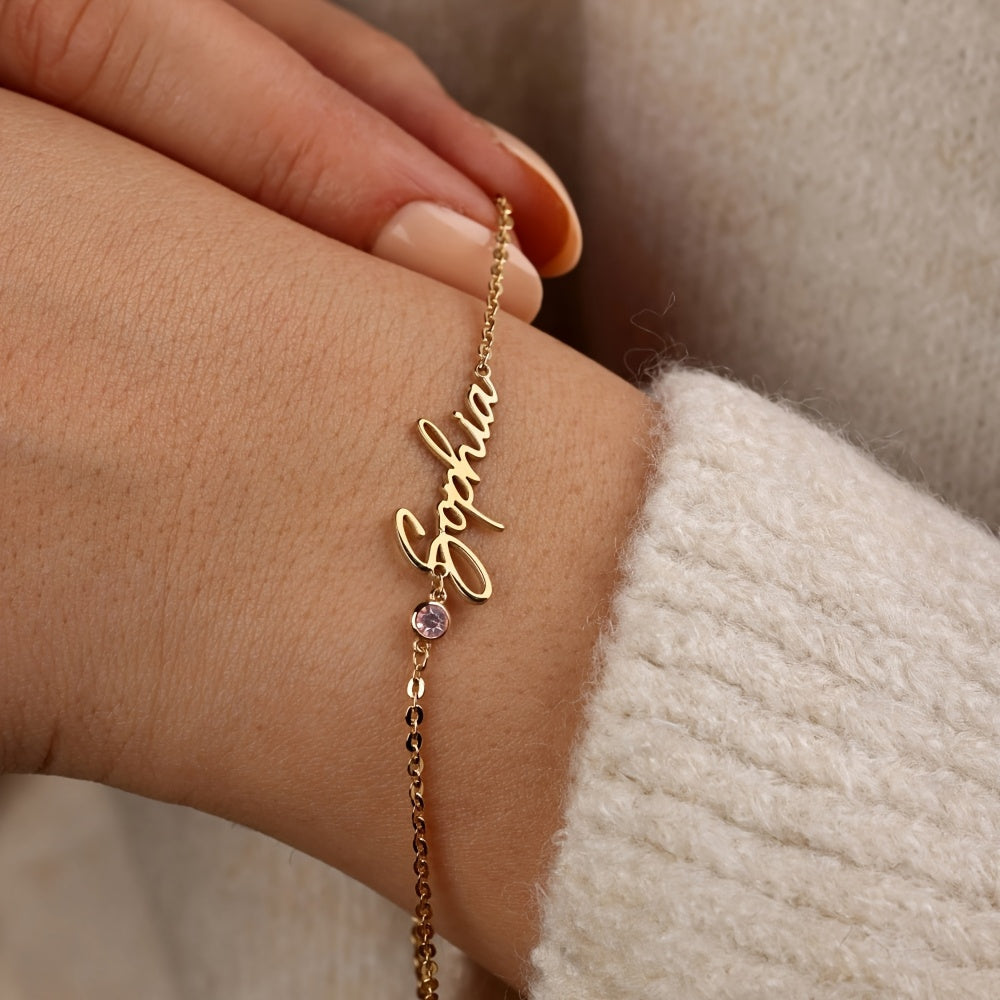 Zarif 18K Oltin Qoplamali Noxush Po'lat Ism Bilaguzuk, Sintetik Zirkoniya bilan, Vintage Uslubida Maxsus Tug'ilgan Kuni Zargarlik Buyumlari Har Kunlik Kiymak va Maxsus Tadbirlar Uchun