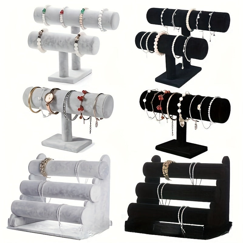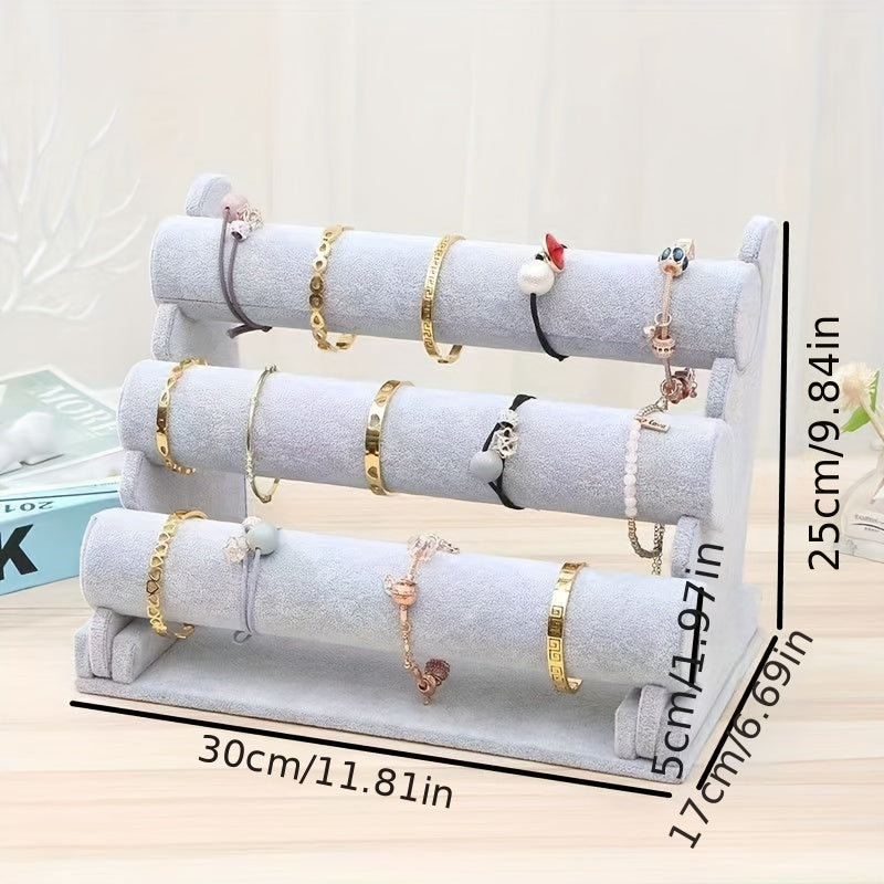 Velvet zargarlik buyumlarini namoyish qilish standi yog'och asos bilan marmar teksturasi ko'p darajali tashkilotchi bilan bilakuzuklar, soatlar va uy bezaklari uchun