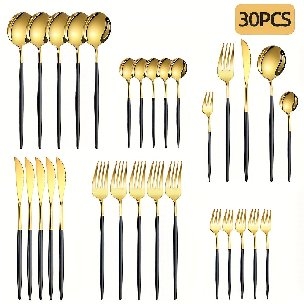 30-Donali zanglamaydigan po'latdan tayyorlangan oshxona buyumlari to'plami, aynali yuzali, idishga mos keladigan, tishli, pichoq, qoshiq, bardoshli stol buyumlari