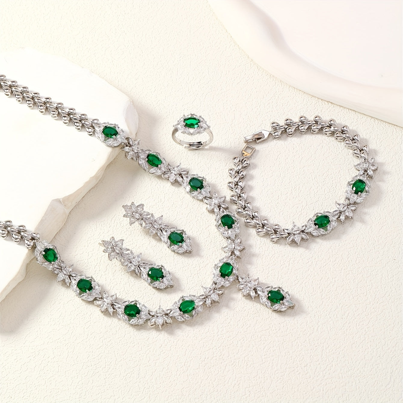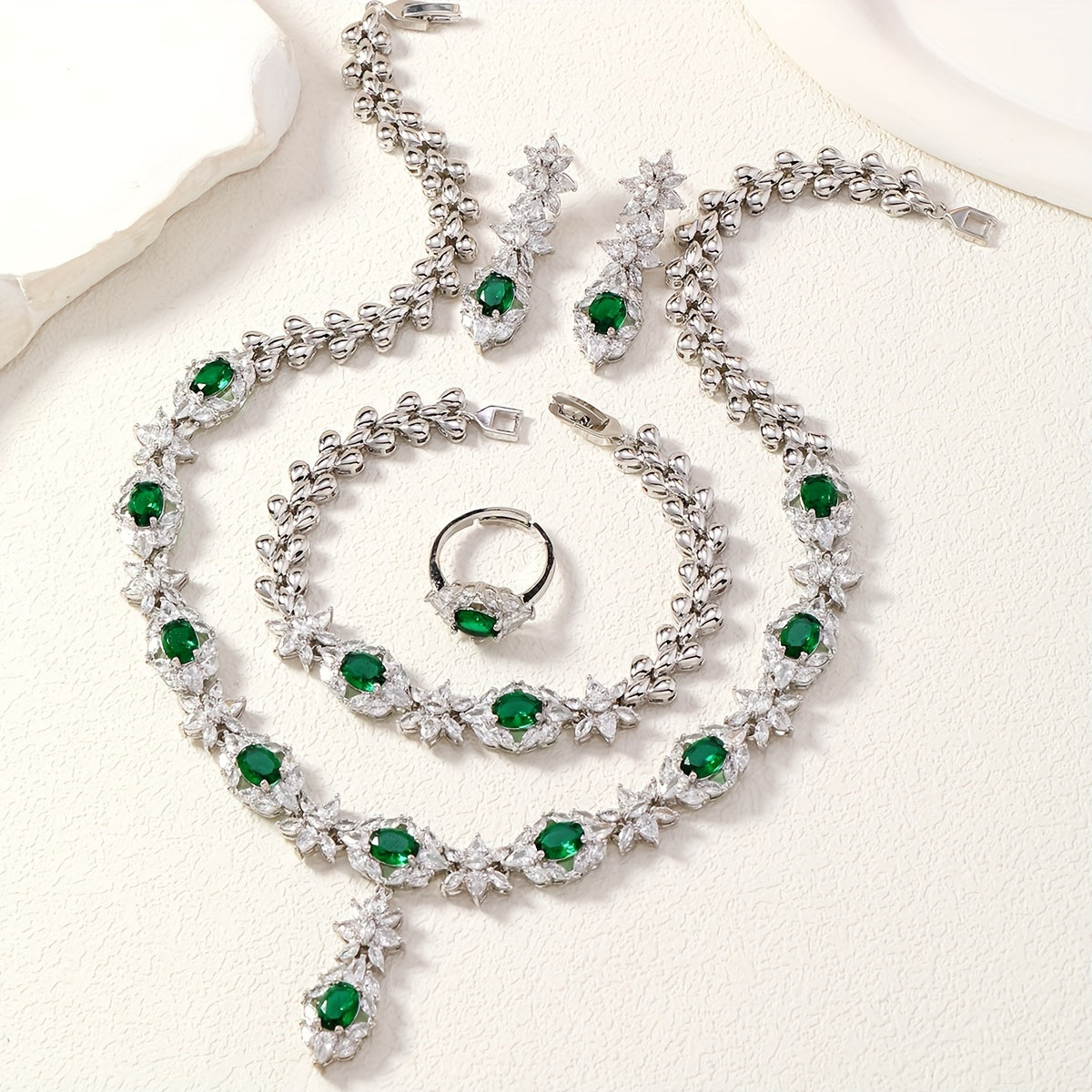 Zamonaviy 4-qismli zargarlik to'plami: 18K oltin qoplamali mis, sun'iy zirkoniya toshlari bilan bezatilgan, marjon, bilaguzuk va uzukdan iborat - to'ylar va 14-fevral kabi maxsus tadbirlar uchun mukammal.