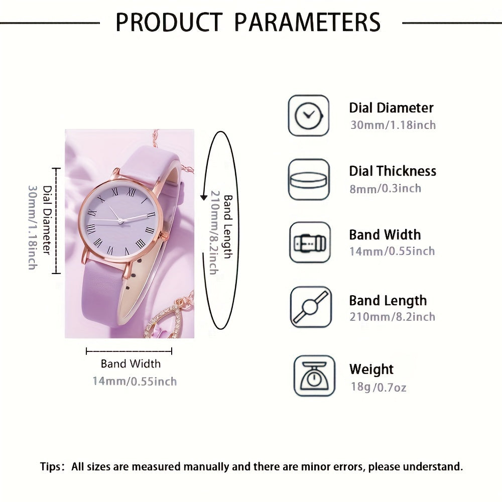 Ayollar uchun zargarlik to'plami, 5 ta qism, kvarts soat bilan, charm strap, an'anaviy moda aksessuarlari