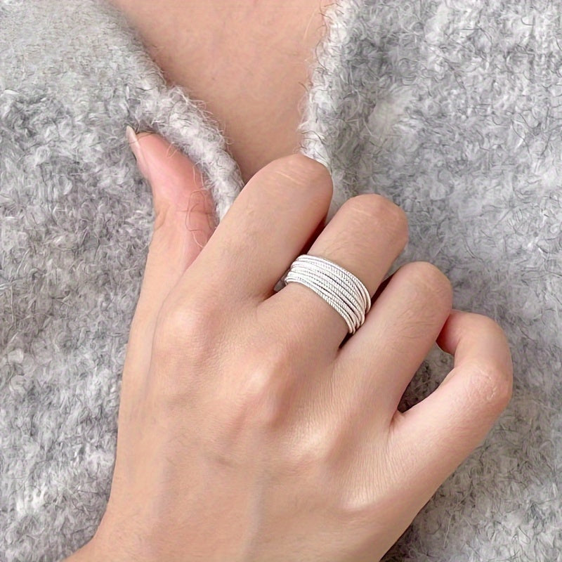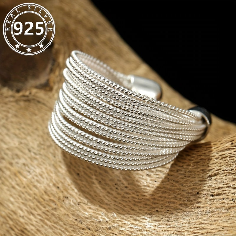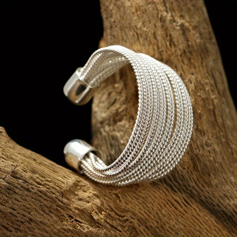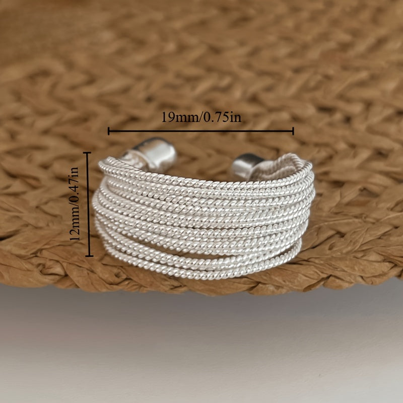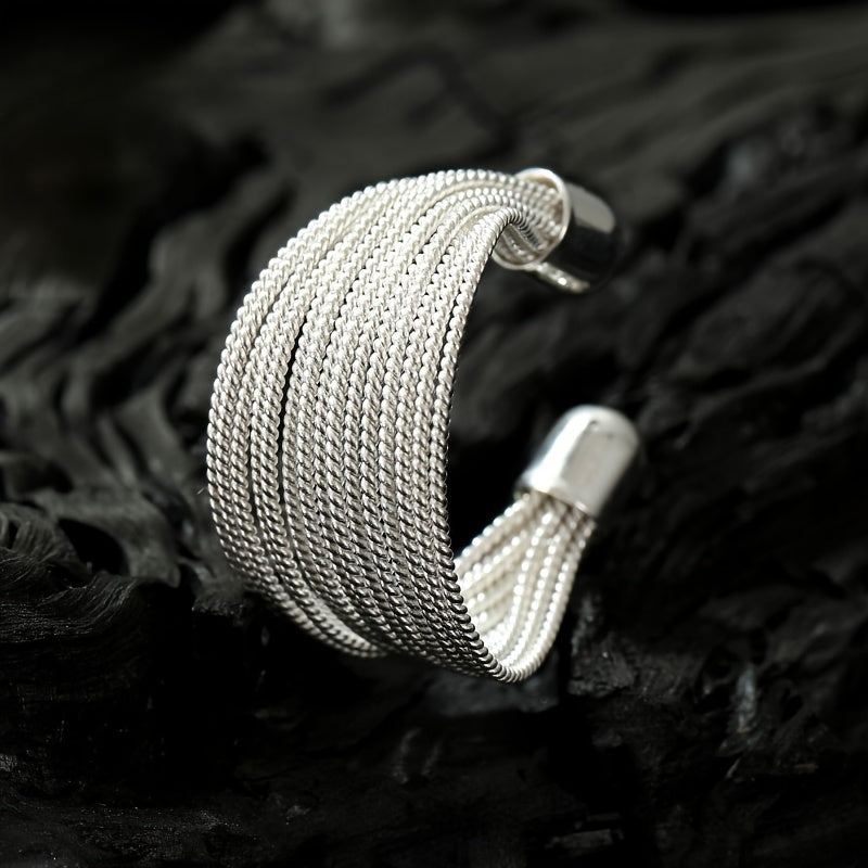 Zarif va yengil, bu ochiq dizayndagi ko'p qatorli halqa ayollar uchun 925 kumushdan tayyorlangan va oddiy koreys uslubini o'z ichiga oladi. Chiroyli oltin rangda, bu qo'l aksessuari faqat 5g/0.18oz og'irlikda.