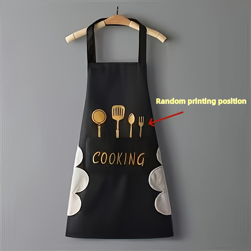 Polyester aralashmasidan tayyorlangan, cho'ntaklari bilan zamonaviy apron - mustahkam va suv va yog'ga chidamli, uyda pishirish uchun ideal. To'qilgan dizayni bilan uslubiy va funksional uy kiyimi, oshxona zaruriyatlari uchun mukammal.