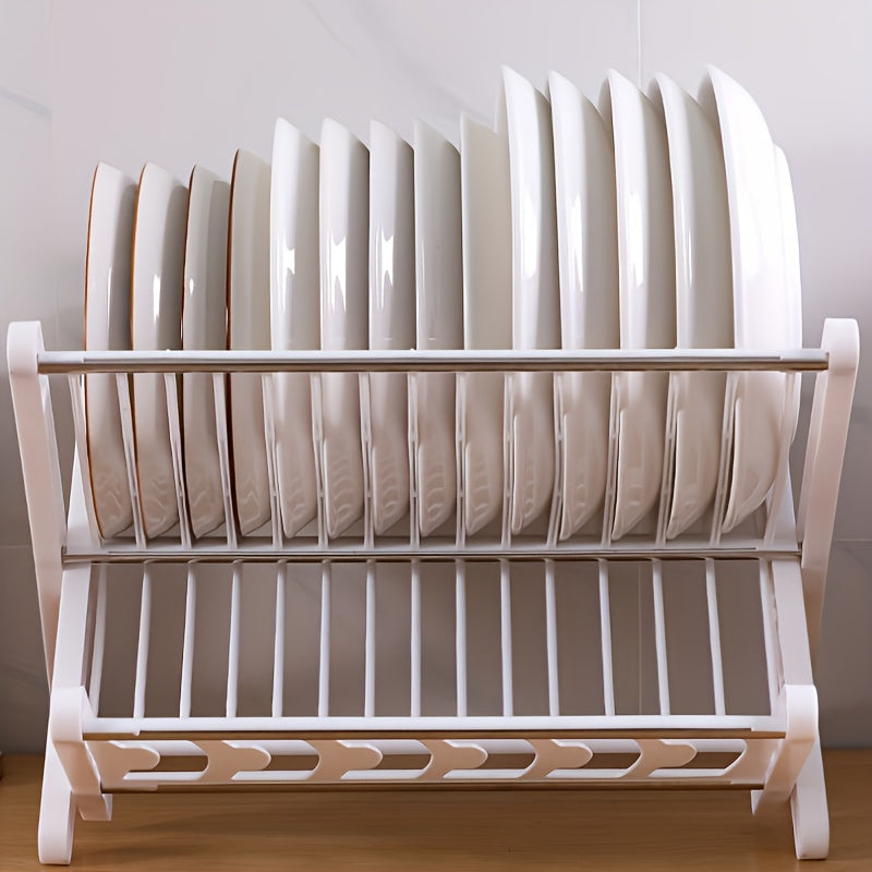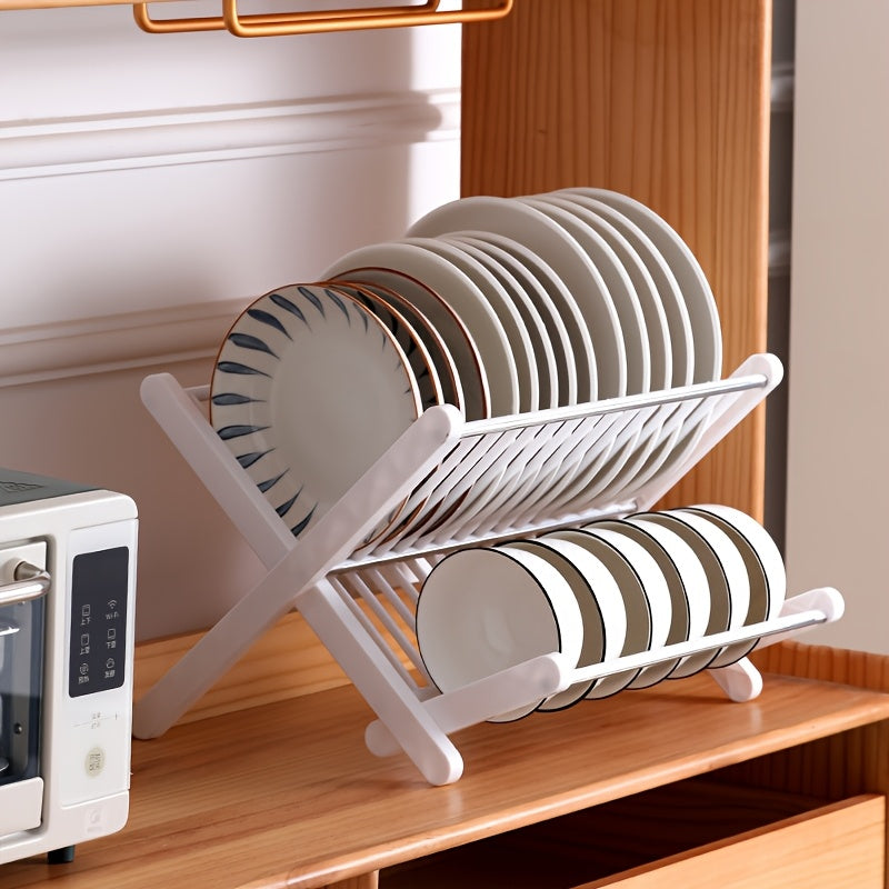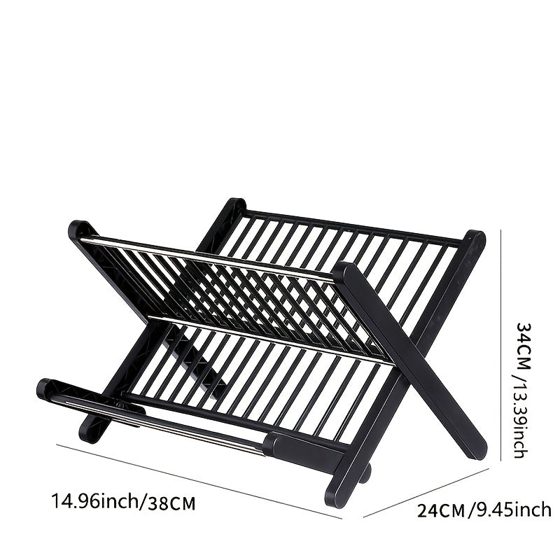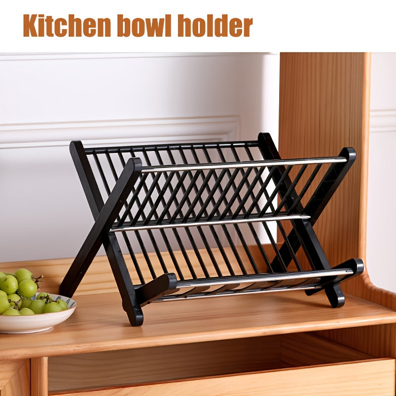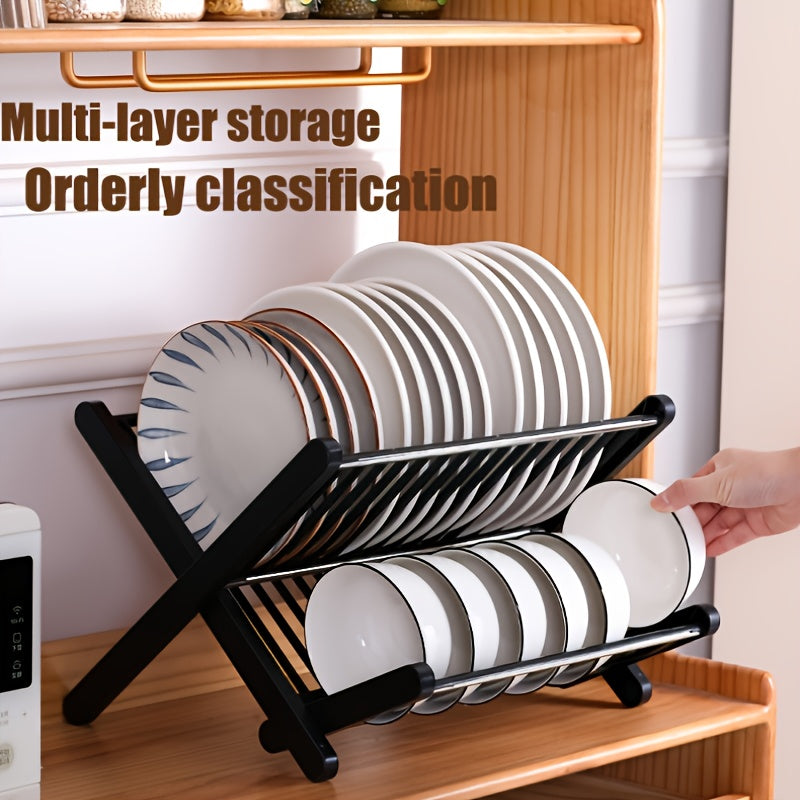 Qora va oq ko‘p qatlamli idishlar uchun qabul qilish racki, ochiq javonlar bilan, joyni tejovchi dizayn
