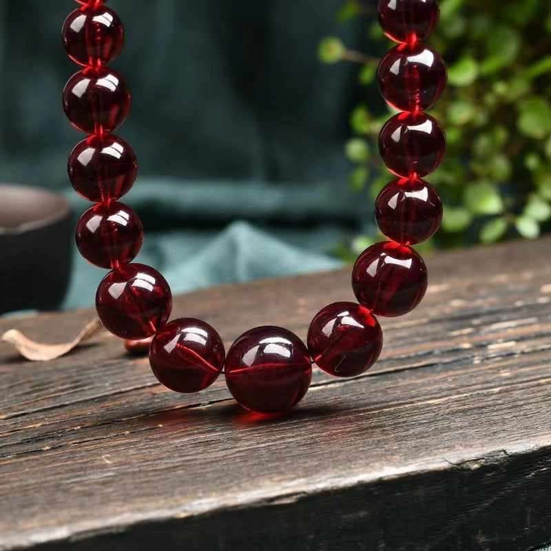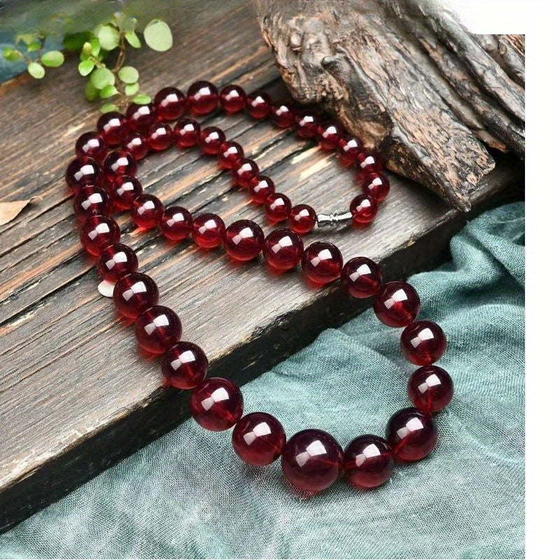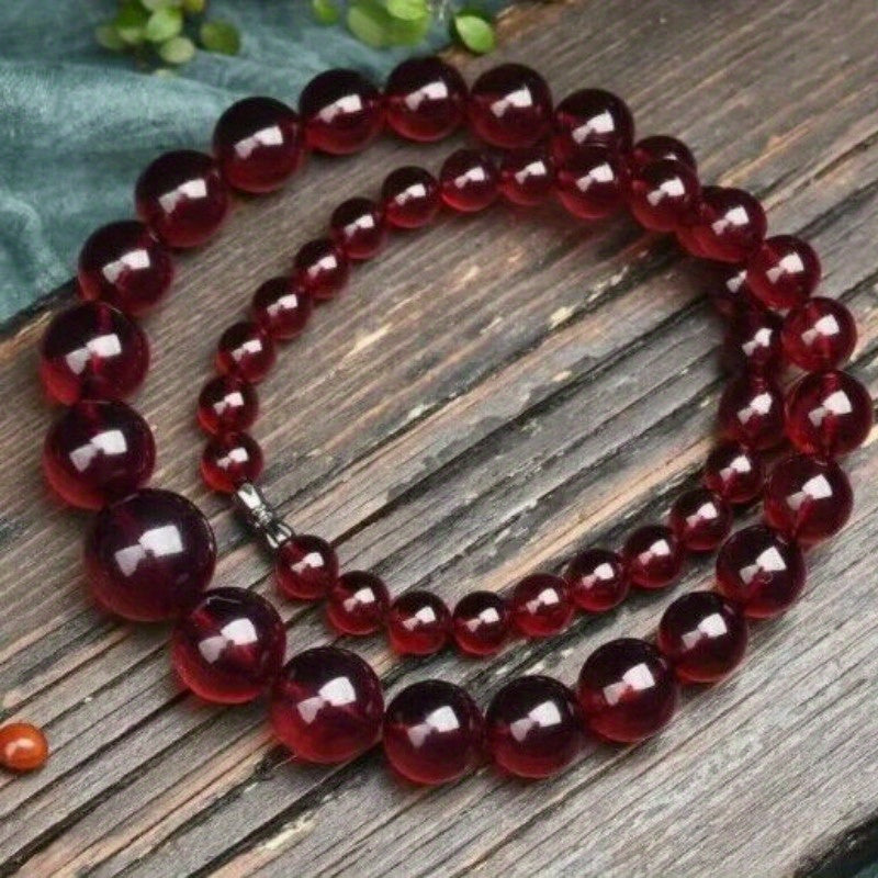 Zarif Qon Amber Beadli Marjon, Bohem uslubida, Har kuni kiyish uchun metall bo'lmagan uniseks pendanti