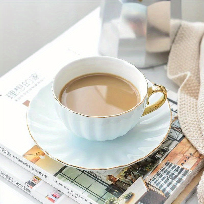 Oyoq bilan qoplangan oltin chekka bilan xomashyo qahva to'plami, pastel ranglar, yaltirashli yakun, idishlarni yuvish mashinasiga mos, uy yoki bayram uchun